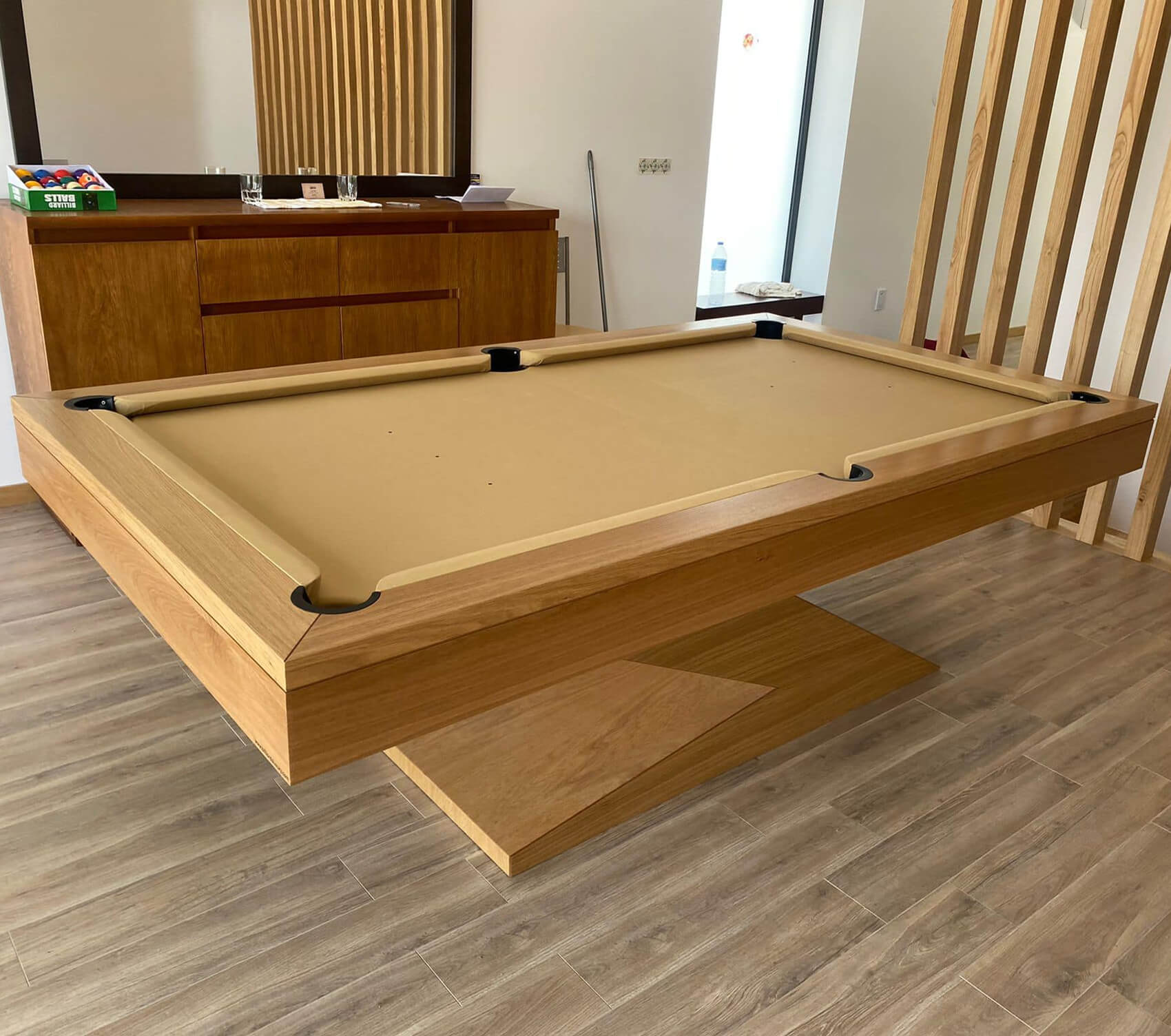 The Zen is one of the most popular luxury pool tables available. With a striking, uncompromising style, that Z-shaped stand makes a real statement in any games room or boardroom.