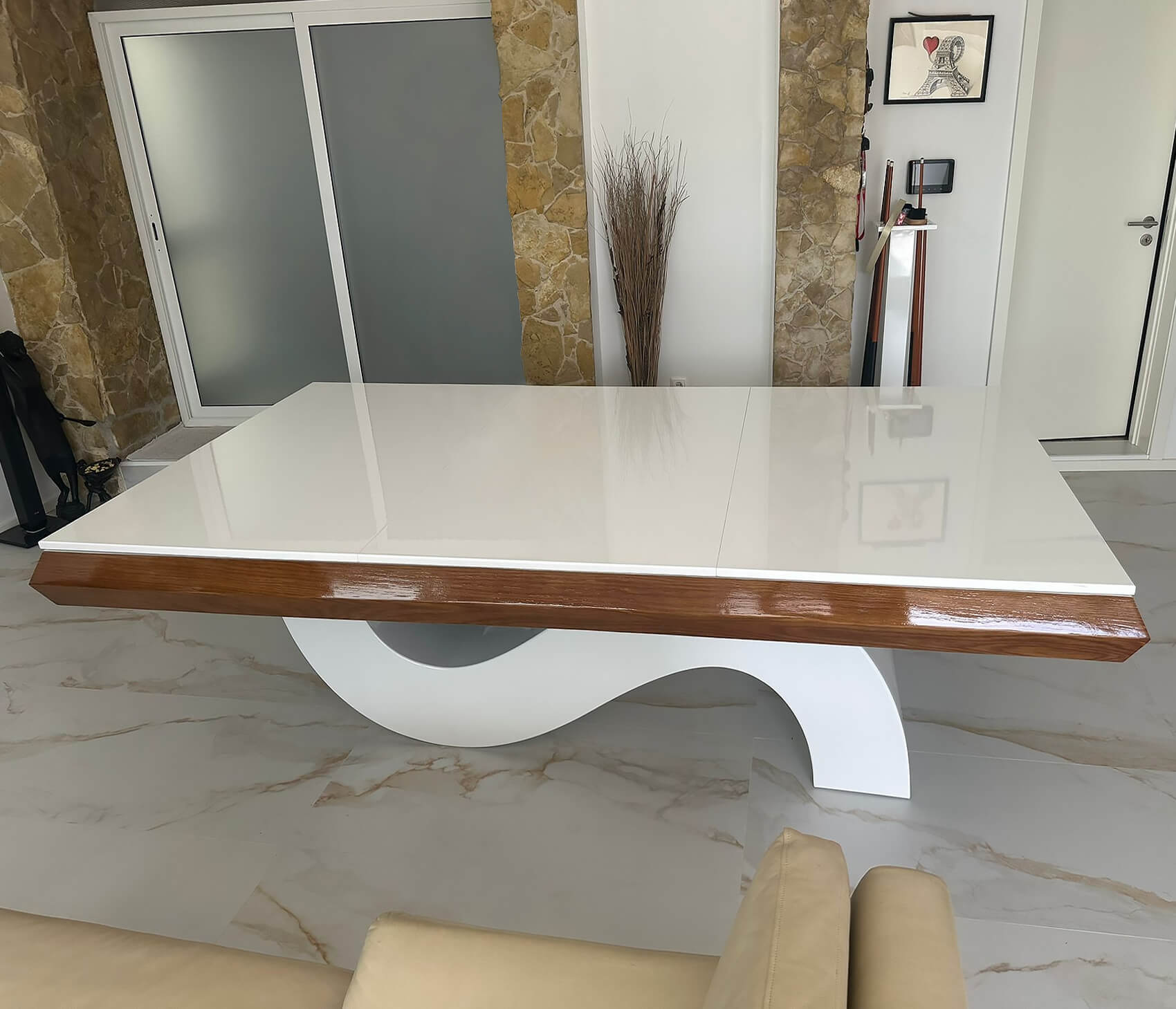 You can also add optional table tops in wood or glass, to transform it into a dining table, a ping-pong court or a functional desk. Bring true art and versatile gaming into your home with the Picasso Luxury.