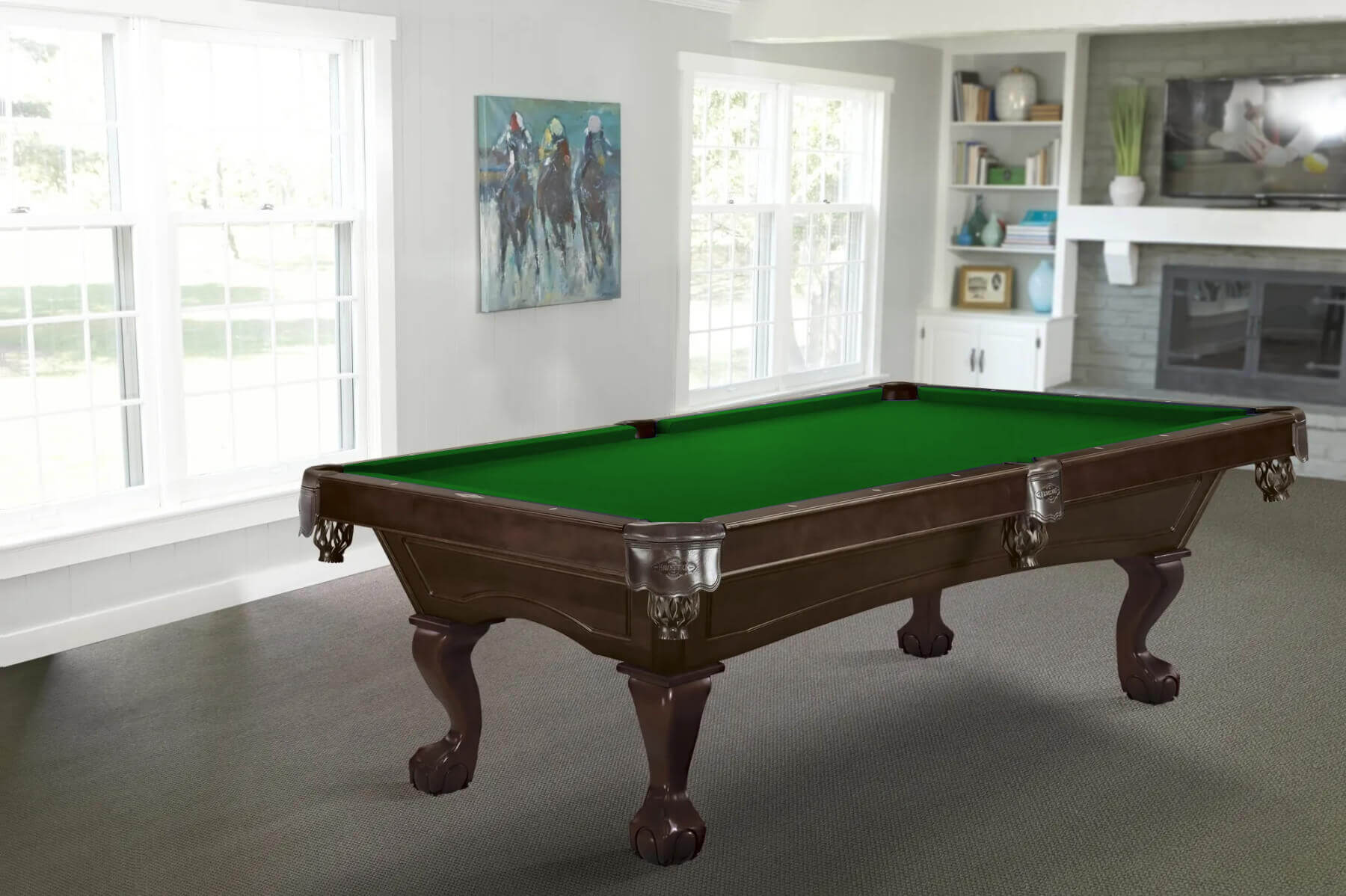 Created in the fashionable Chippendale 'ball & claw' furniture style of the 1700s, the American pool-spec Brunswick Allenton is inspired by the past - but updated for the modern era. It's available in a darkened Espresso hardwood finish, made in two popular table sizes and with multiple play surface cloth colours to choose from. A detailed and unique slate bed experience awaits you!