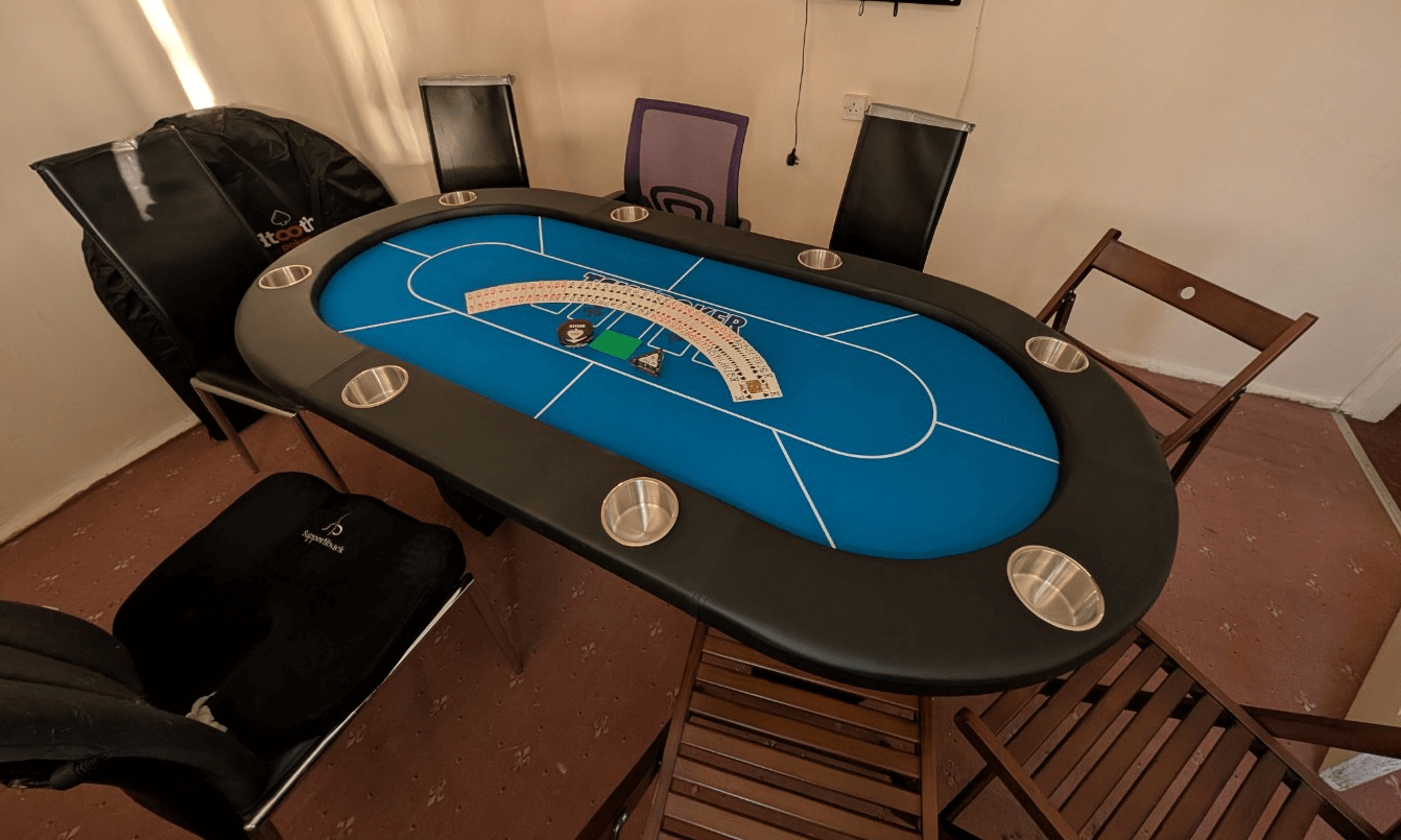 Made with British players in mind, the cushioned arm rest is fitted with eight drinks holders, each capable of holding a British pint glass. Many American poker tables have smaller drinks holders for bottles, so this is a welcome feature for many thirsty British poker players!