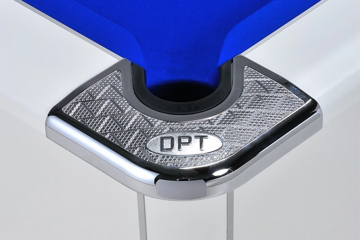 Each corner is fitted with a protective metal cap, textured for a stylish look. Inside each pocket, flush-fit liners direct each ball into the internal return system that collects balls inside the table ready for the next game. The Omega Pro is available in both freeplay and coin-op variants.