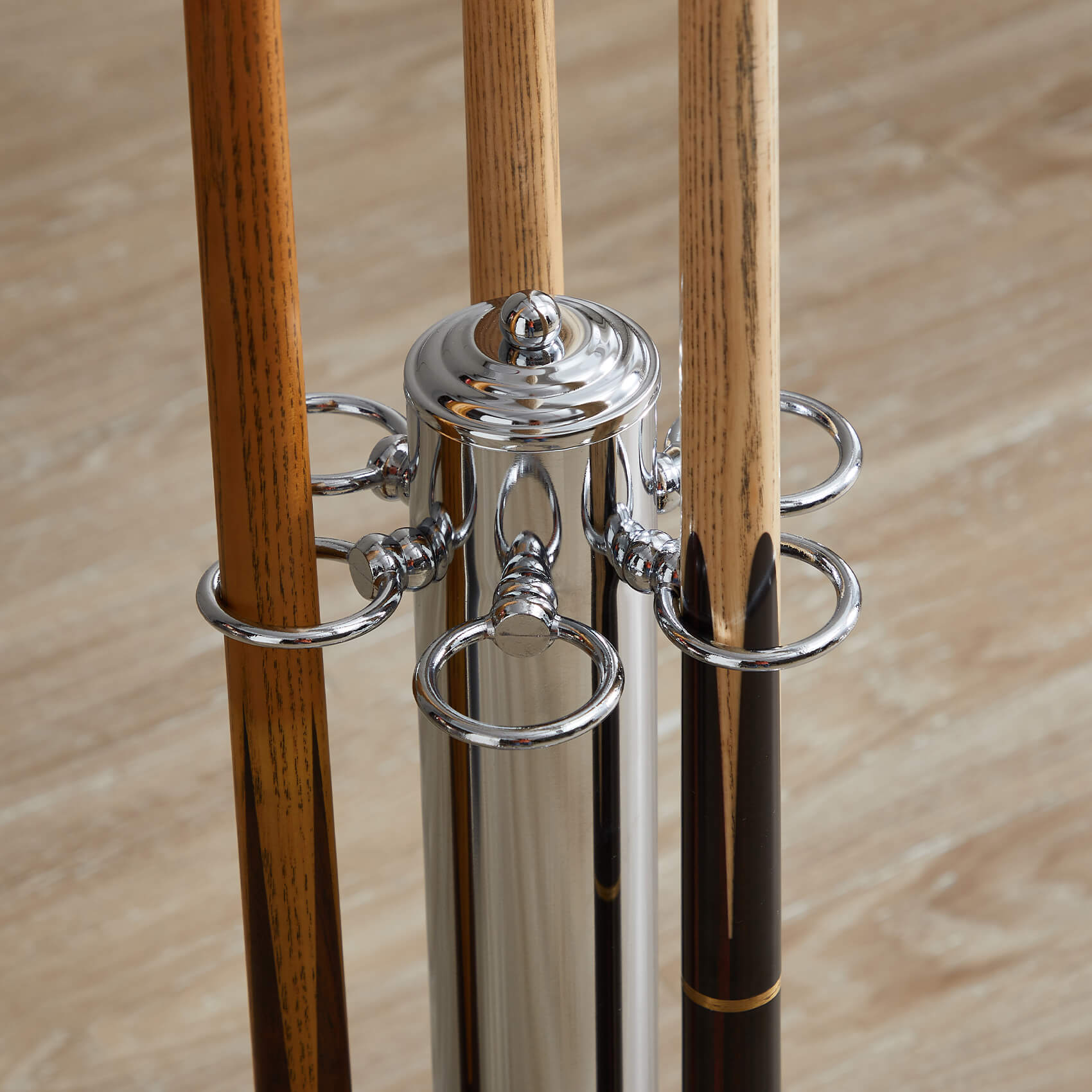 Detail of the Chrome Tower cue rack