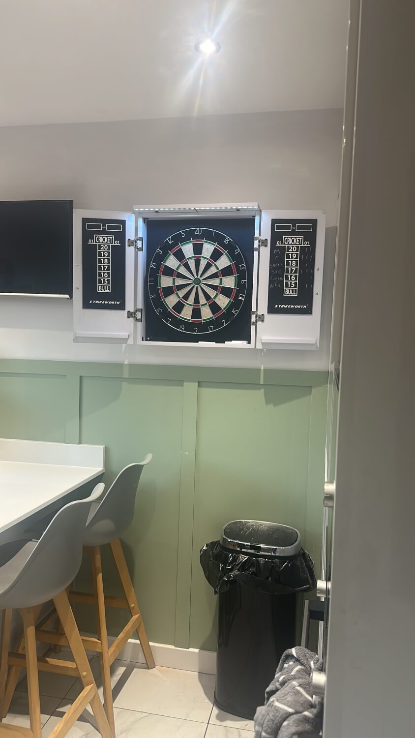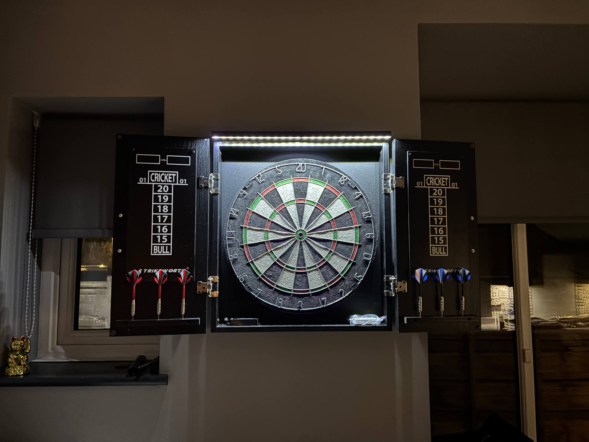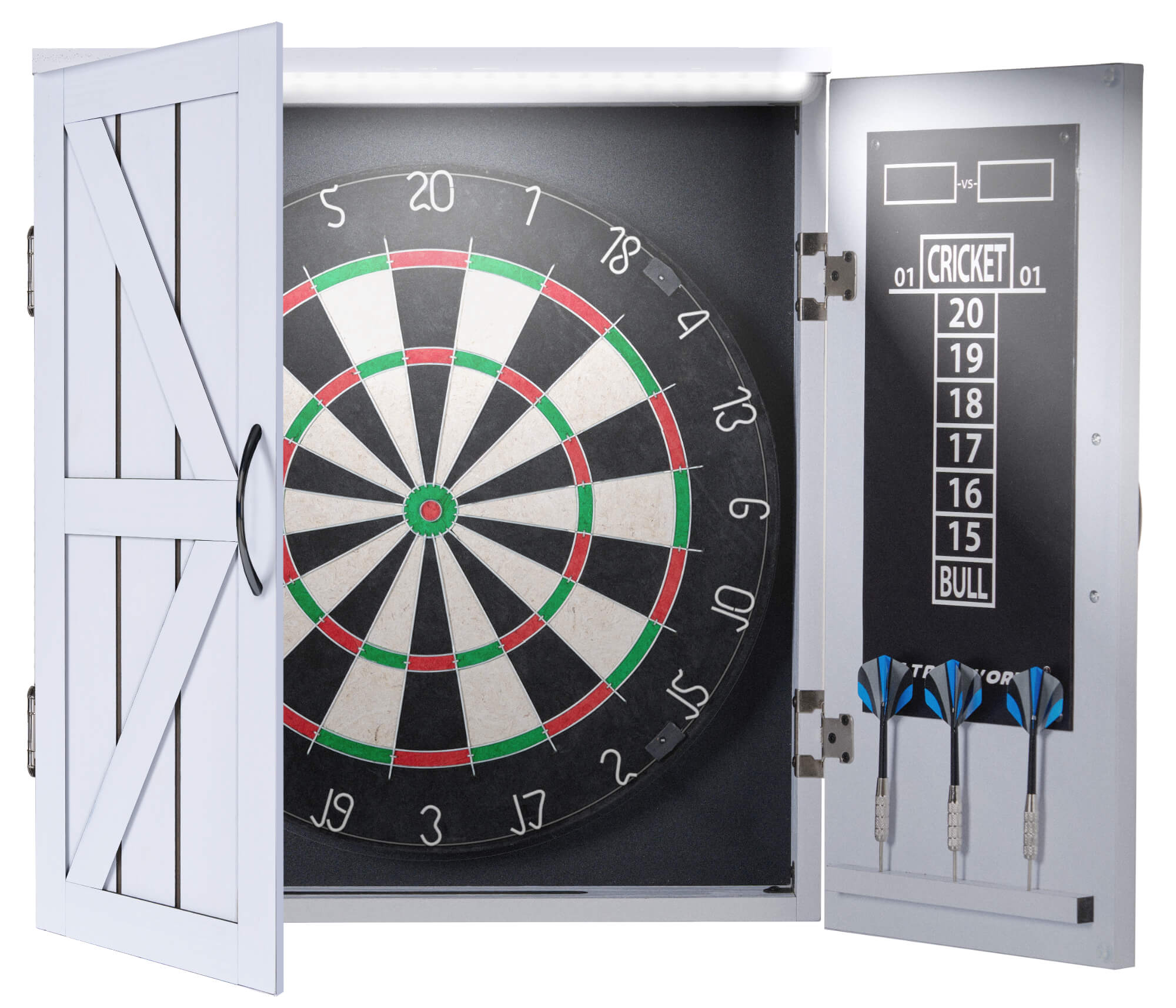 The cabinet features a unique LED floodlighting function. Simply pull out the strip at the top to switch it on and throw clear, vivid light right across your dartboard. So no matter how dark your games room gets at night, the darts can continue into the small hours!