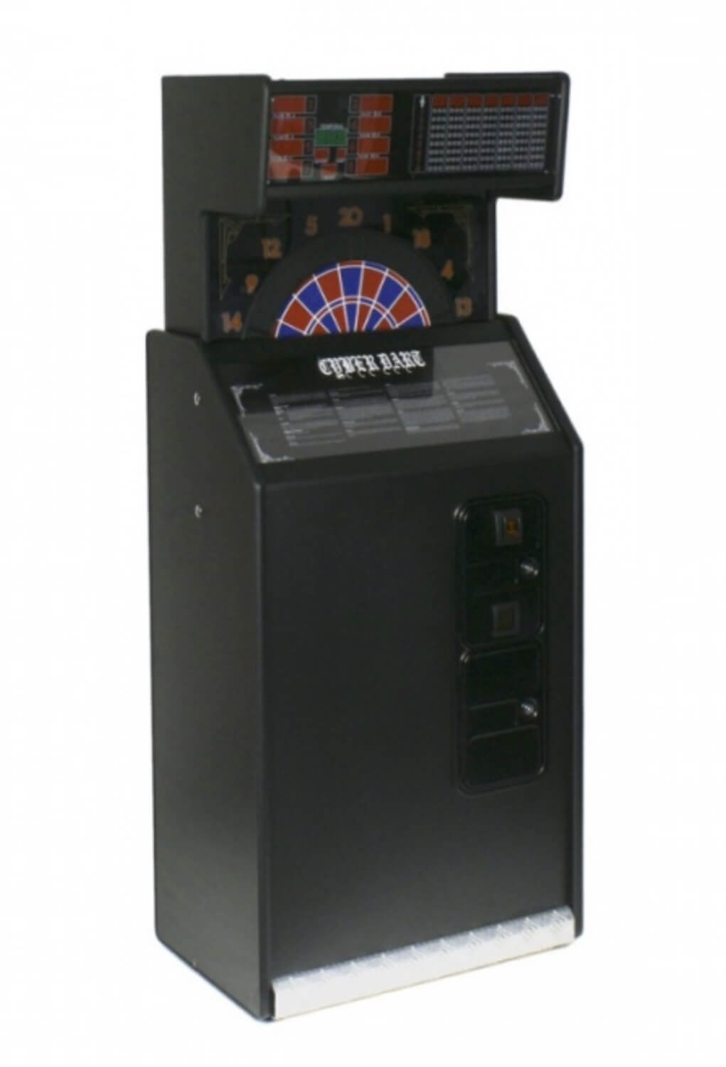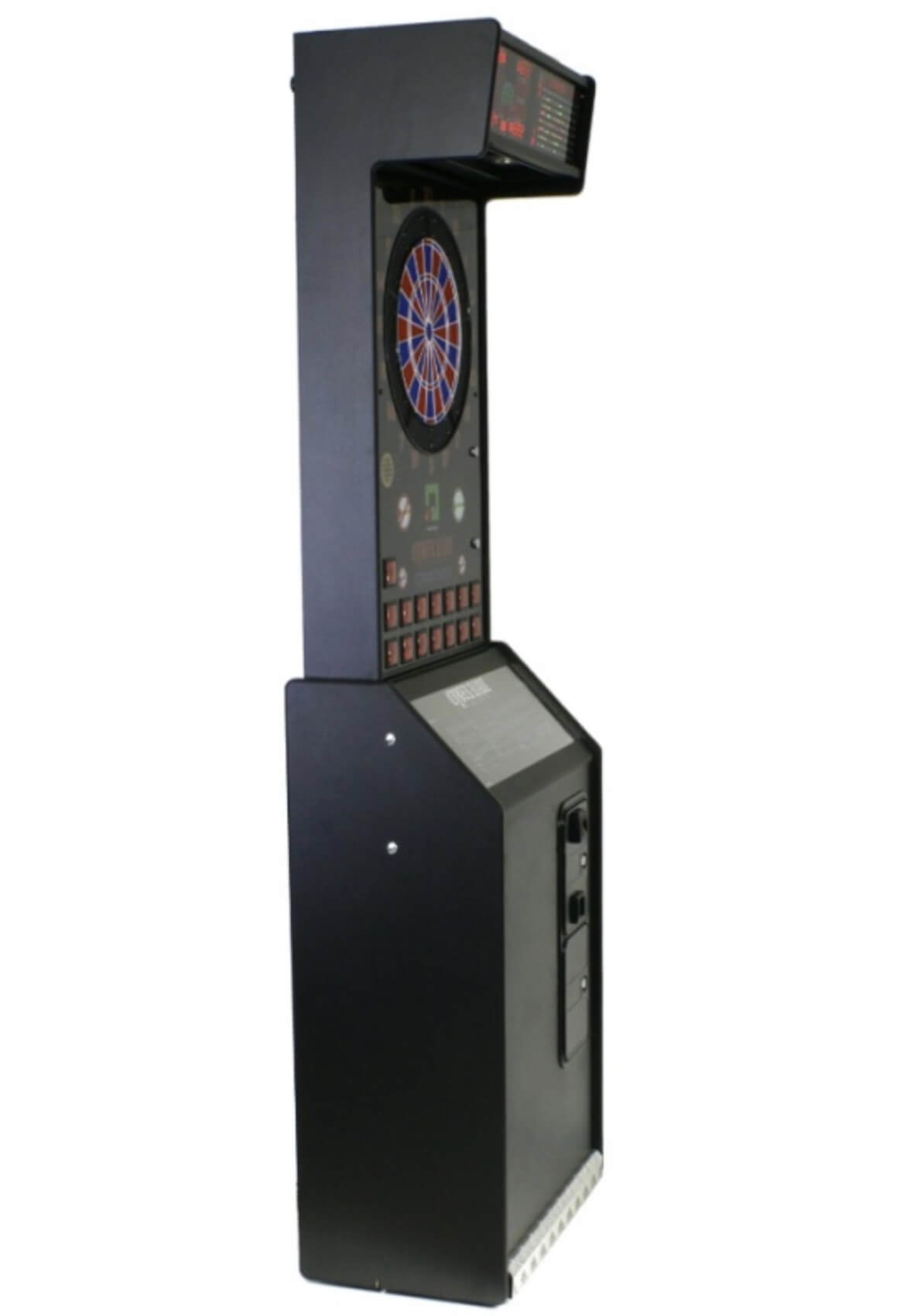 Built into a tough wood composite cabinet with a protective laminate, The machine is fitted with a Comestero coin mech that allows you to charge for games. However it can also be set to freeplay for the ultimate home games room darts installation.