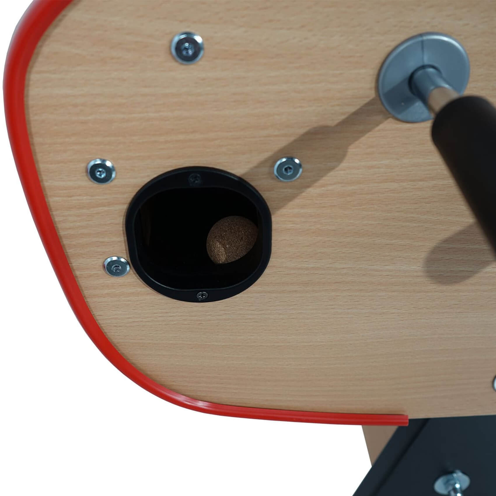 When a goal is scored, the ball is returned to the ball return hatches on either side of the table, close to the goal. This makes it easy to grab the ball and quickly reintroduce it to play. And don't forget to notch up another point on your scoring abacus - colour-coded to match your team's jerseys.
