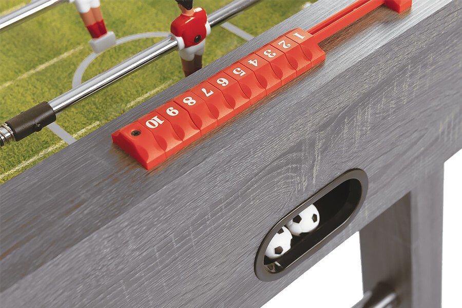 With ball recovery ports behind each goal, easily accessible by players, and colour-coded scoring abacuses at the ends of the table, the F-2 offers a range of mod cons designed to make your next game of foosball more enjoyable, more dynamic - and more fun!