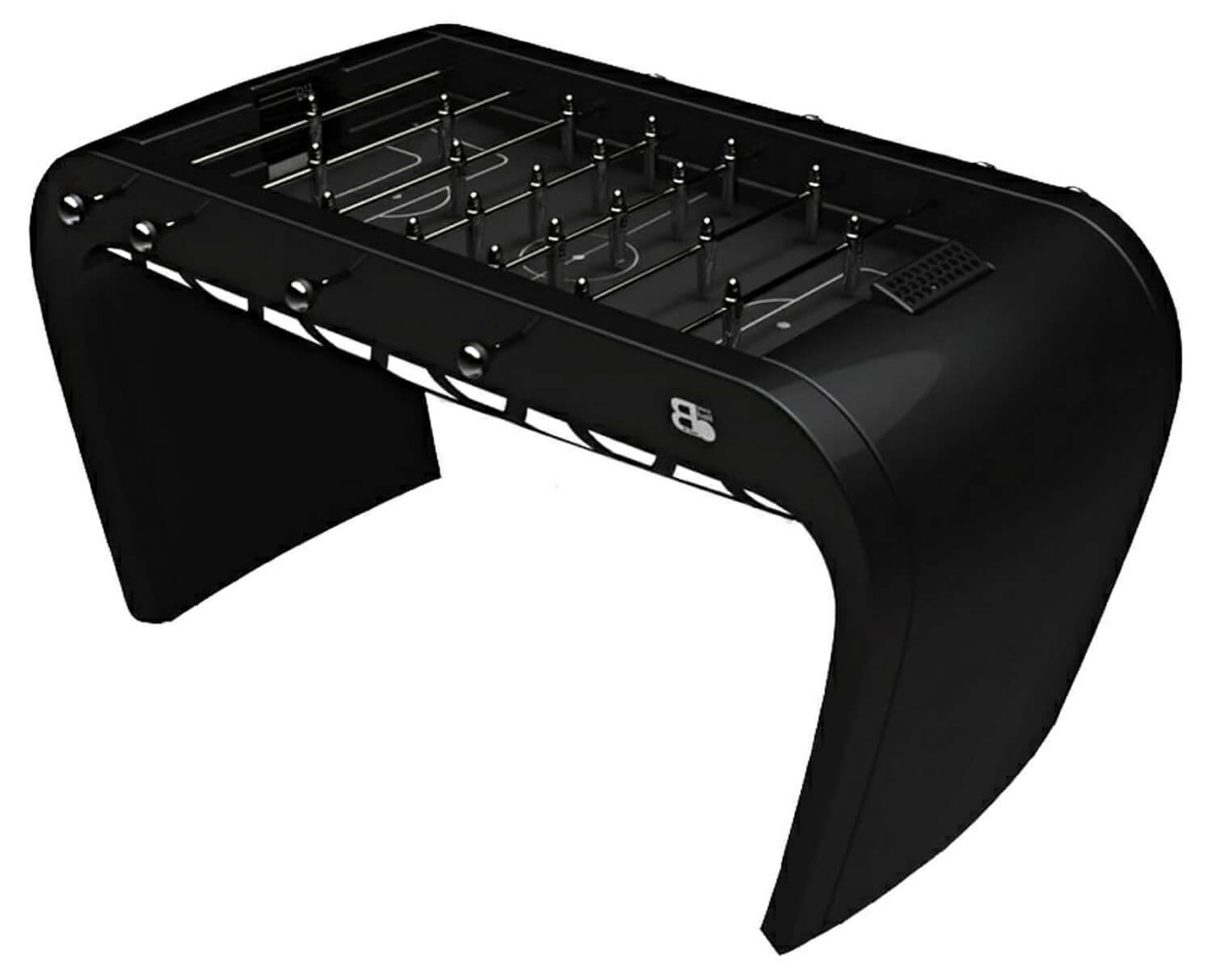 The Blackball is a foosball table with a strikingly different silhouette. Gracefully arced, it is designed to complement the living space of the owner and can be personalised with a vast range of optional finishes, extras and upgrades.