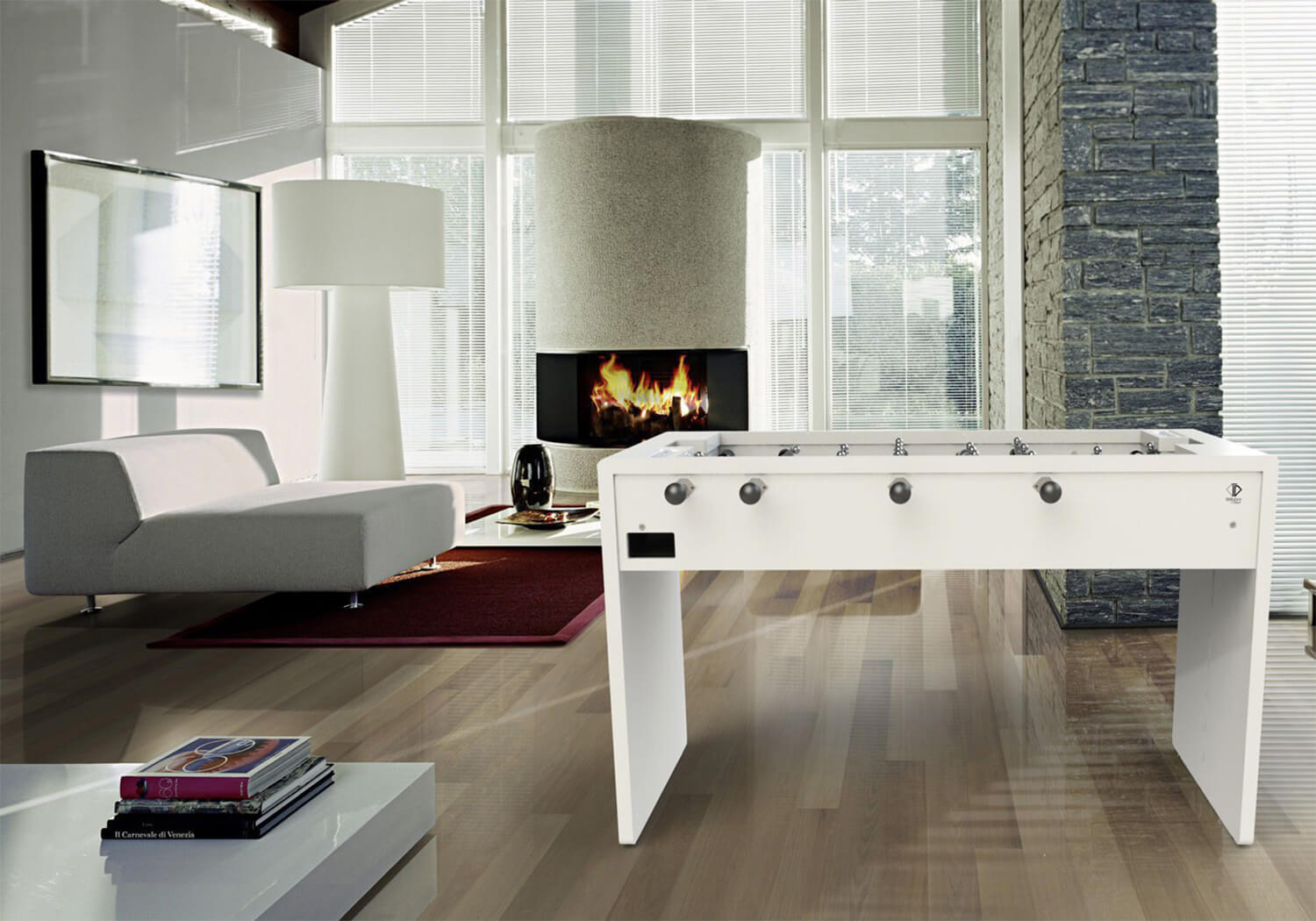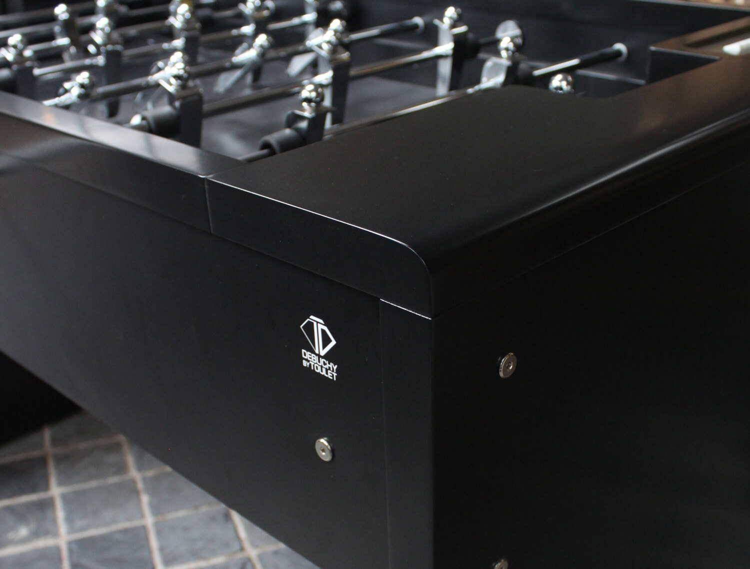 With an official tournament-sized playing surface topped with playable Gerflex, the main structure is built in 45mm wood. The telescopic bars are chromed steel and the player figures (which are extra-long and can play the ball with their heads) are made from chromed aluminium.