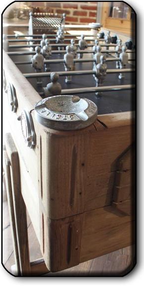 But despite the looks, the name and the reclaimed materials, this isnt an entirely vintage table. Meticulously-machined player figures, etched from aluminium, hover over the tournament-sized Gerflex playfield on 15mm telescopic steel bars and the entire table has been reconstructed to modern quality standards for optimal gaming performance.