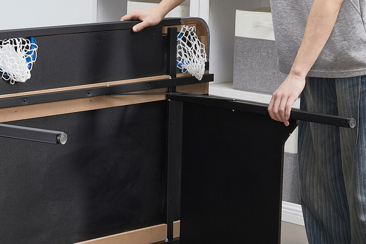 Swap games in seconds by lifting the two-piece table tennis tops onto the pool table. They securely on the pocket rubbers, but can be easily stored with the folded pool table when not in use.