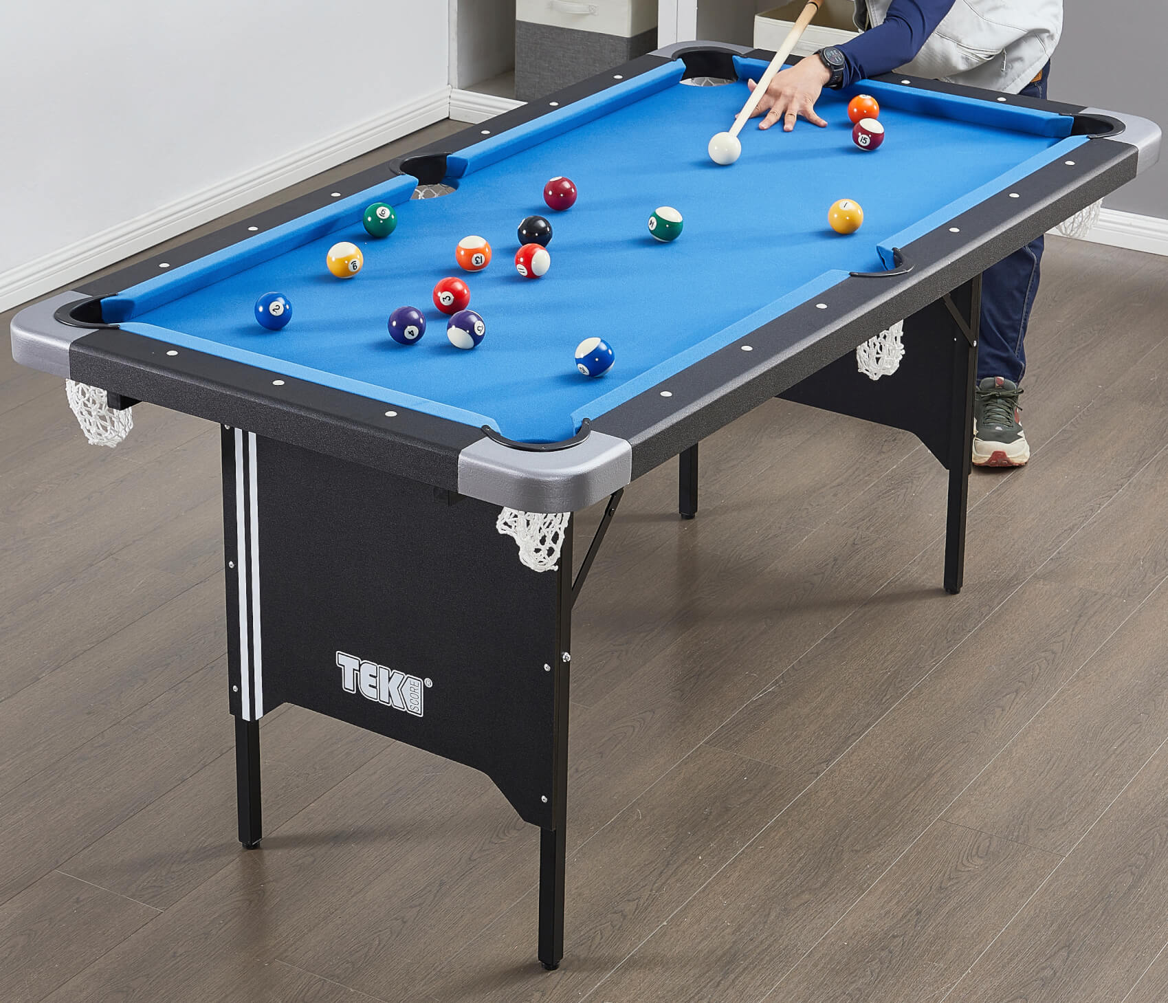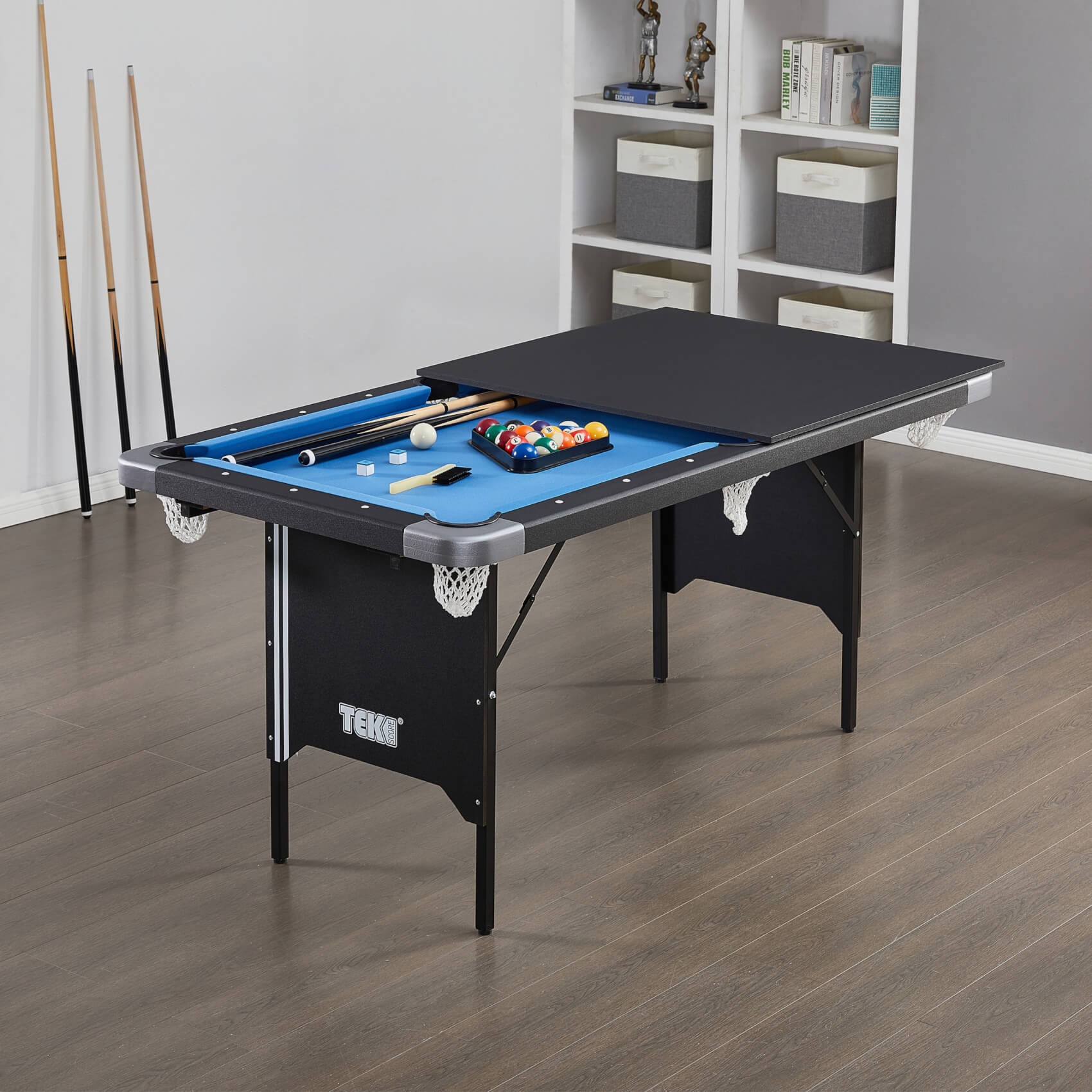 A games room is one luxury that few can afford to have. But even the most compact homes can find space for the Tekscore Folding Leg Pool Table.