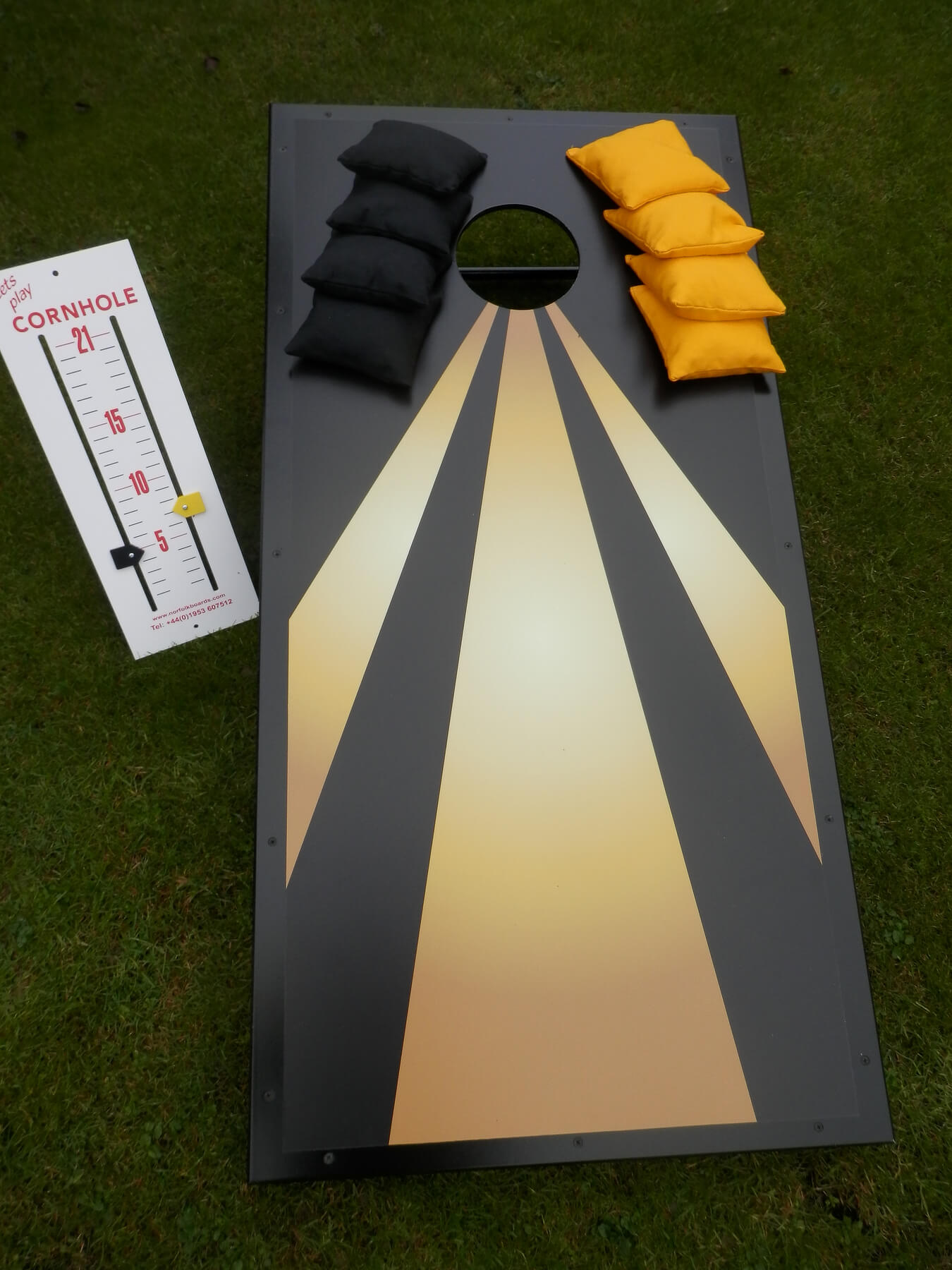 CORNHOLE - Deluxe Half Set. Product ref: cornboarddxhalf Let's play cornhole! Cornhole is one of America's most popular and fun outdoor games and it has been entertaining people at barbecues, tailgate and garden parties for years...and it just keeps getting more and more popular - and now it is available in the UK too!