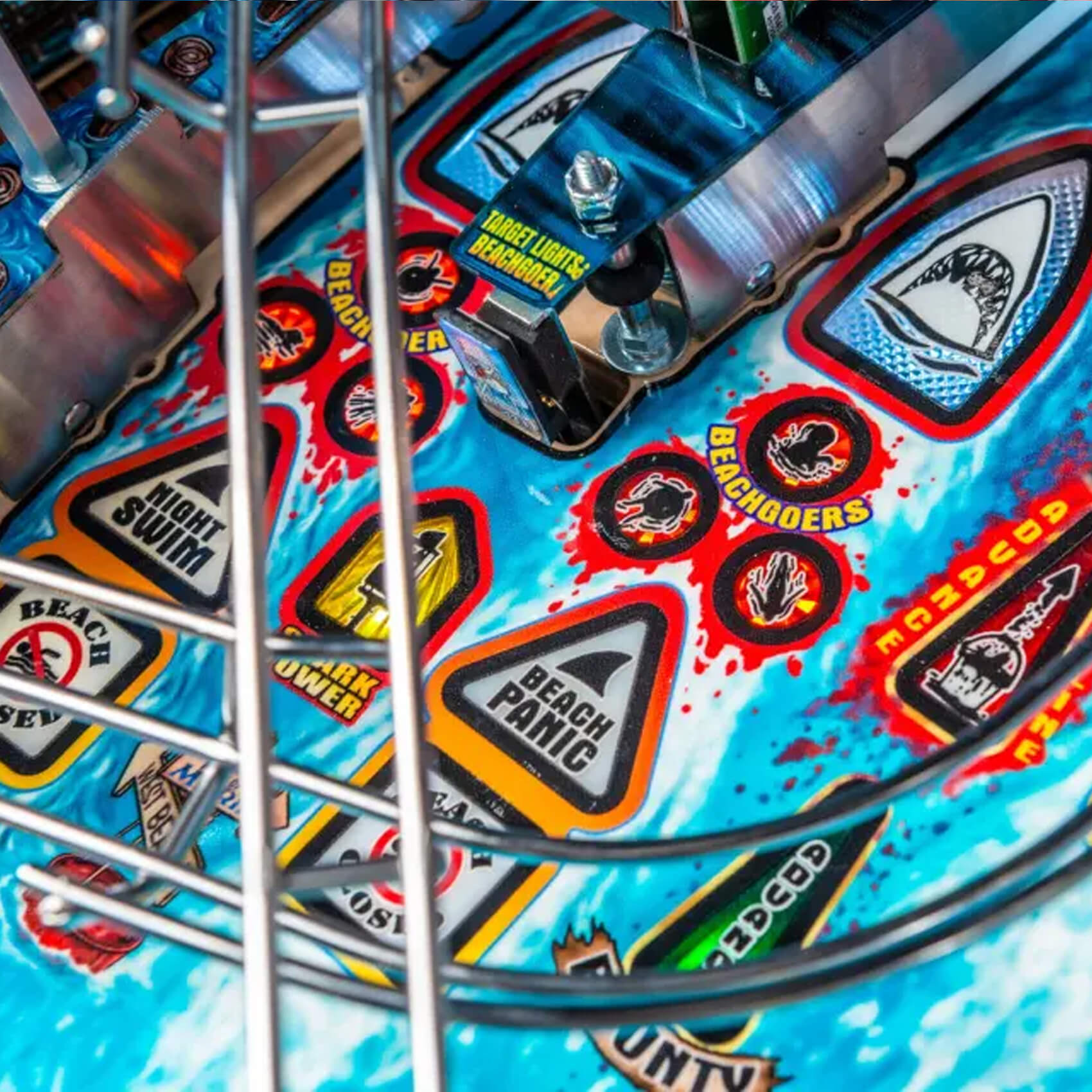 For this Limited Edition version, Stern has pulled out the stops to create something truly special. The LE boasts spectacular foil HD cabinet artwork by Michael Barnard, along with a mirrored backglass art based on the original movie poster. The machine armour is finished in a tough white powder-coat, and matched with internal art blades for a really polished visual effect. There's Speaker Expression lighting displaying unique visual effects that follow the storyline, such as 'Sonar' and 'Blood in the Water', and even anti-glare playfield glass and a shaker motor for vibration feedback as you play.