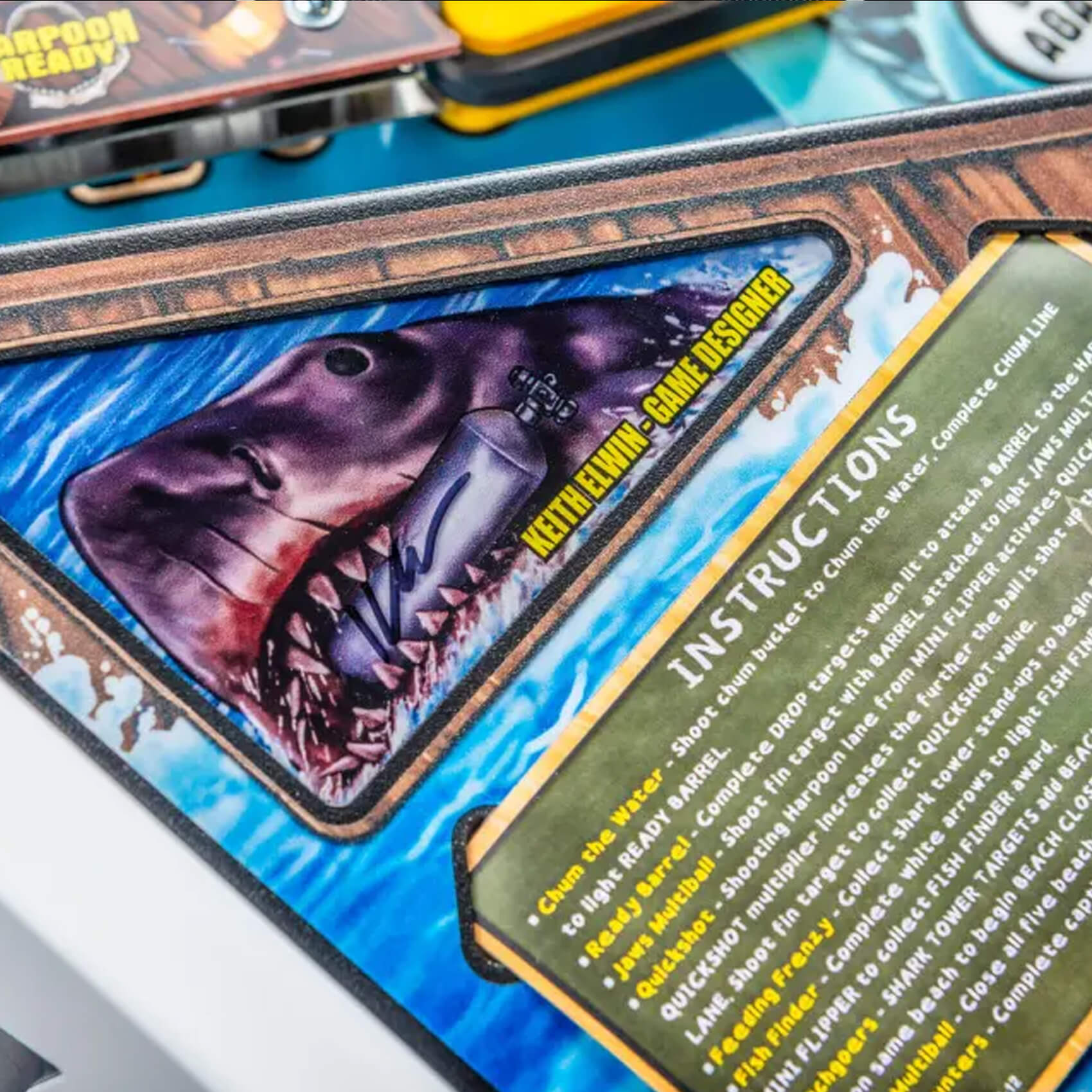 An upgraded speaker system, superior to the sound systems in the Pro and Premium, creates a room-filling sound for the original John Williams movie score, plus dynamic special effects and specially-recorded speech by movie star Richard Dreyfuss. Stern's unique Insider Connected technology comes as standard on all the Jaws pinballs, offering expanded game modes, competitive play and more. And as you're buying the most exclusive version, your machine will be individually autographed by game designer Keith Elwin, fitted with a numbered plate, and come with a certificate of authenticity signed by Gary Stern himself. This makes it the ultimate Jaws movie collectible, and a piece of playable movie trivia history in its own right.
