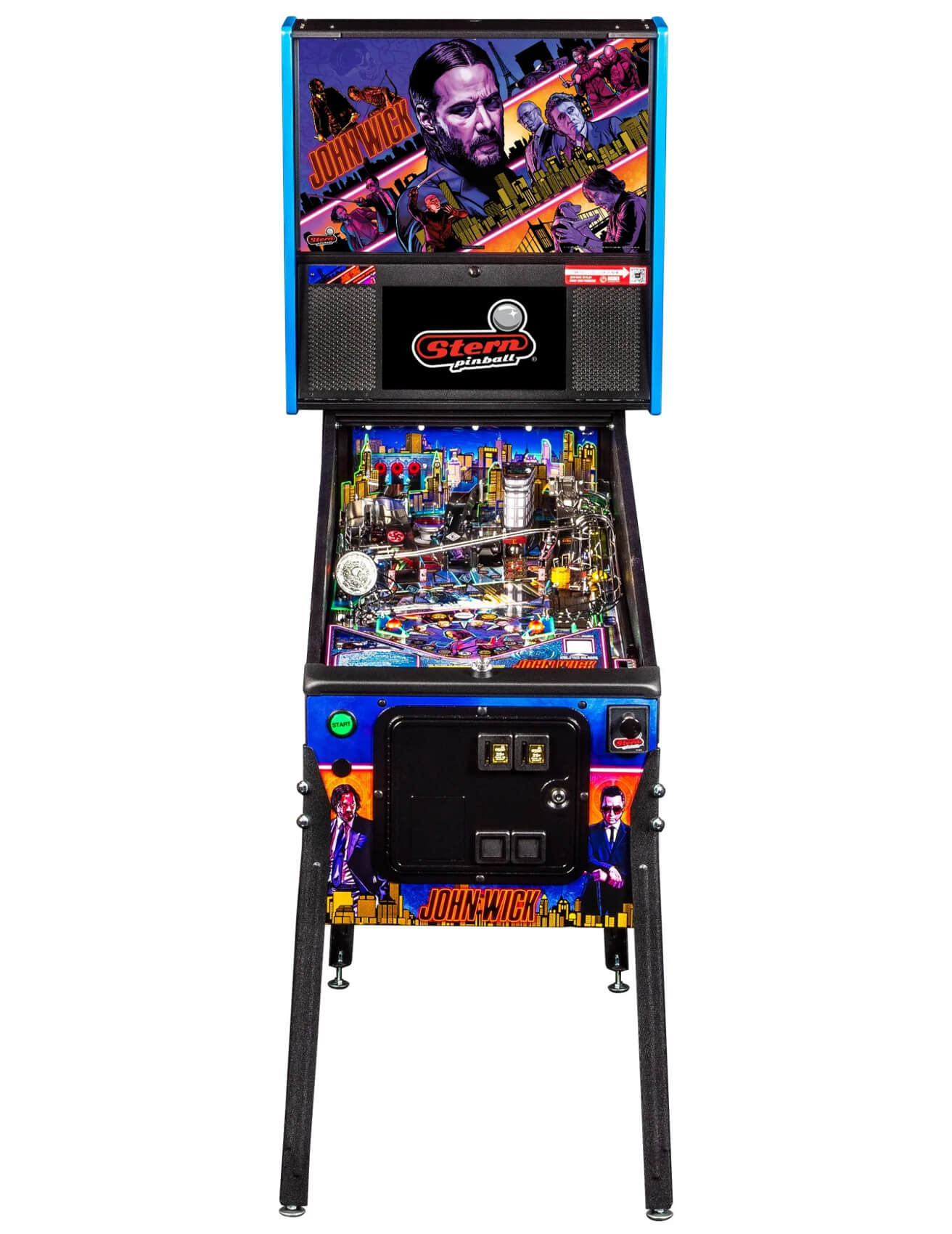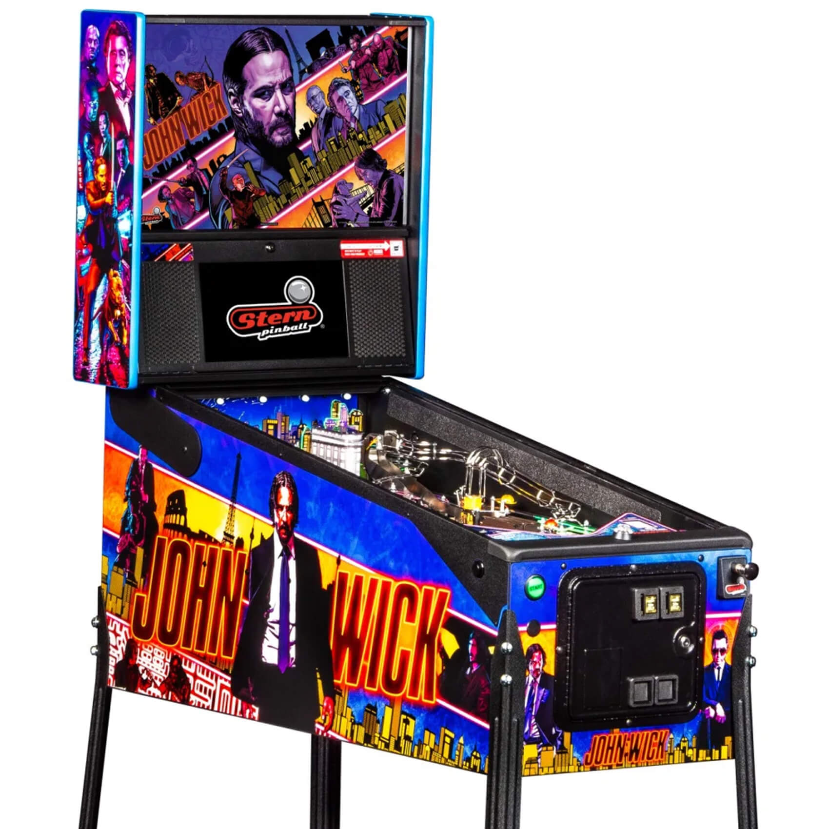 The Stern John Wick Premium is a fully-licensed tribute to the box office-smashing film franchise. It blends the action-packed storylines and exciting characters with the very latest in pinball game design and technology, creating a machine that's essential for any fan of the John Wick films. And with all-new features including AI game systems that react to your gameplay, it's a cutting-edge machine with lots to offer any pinball expert.