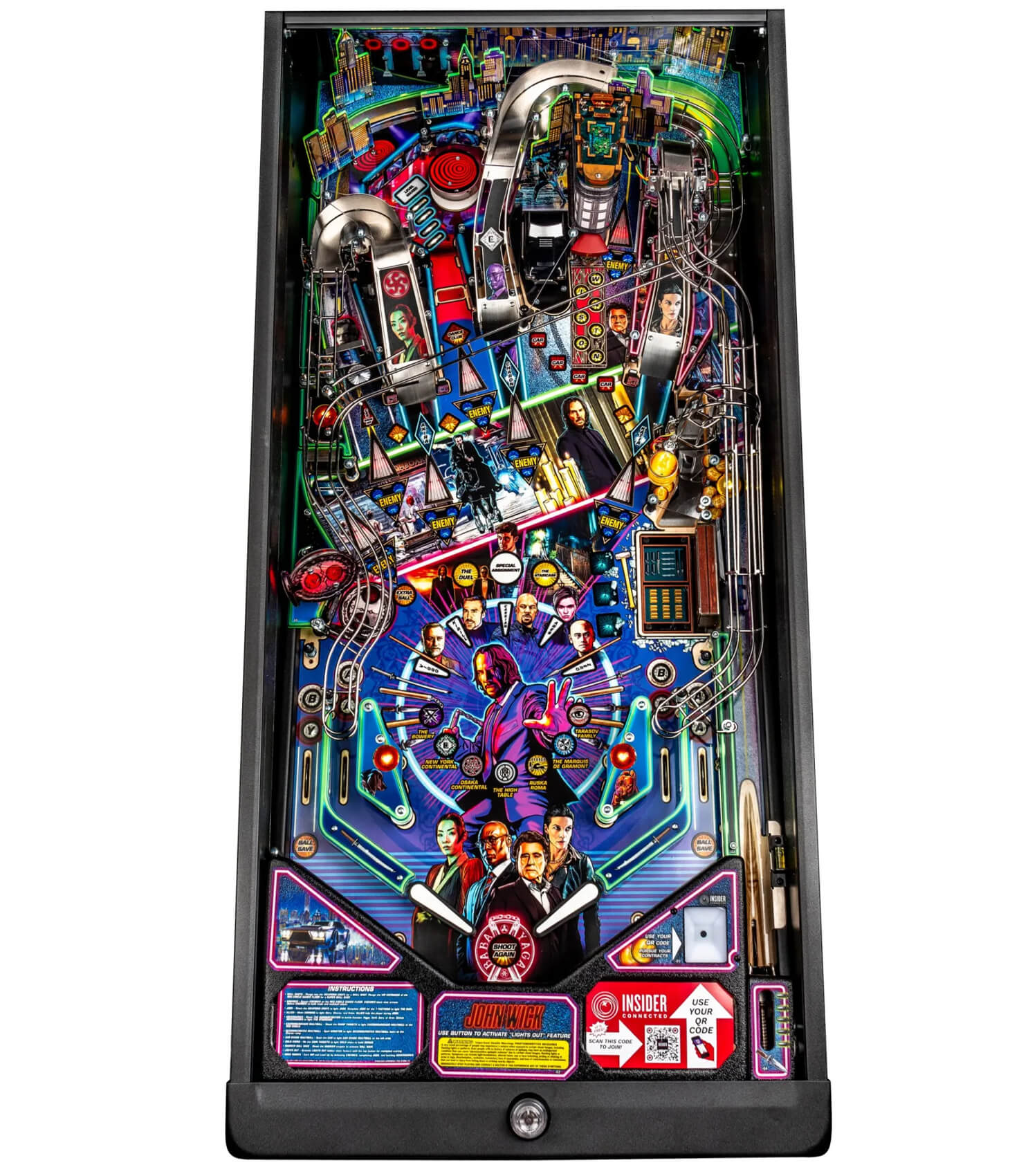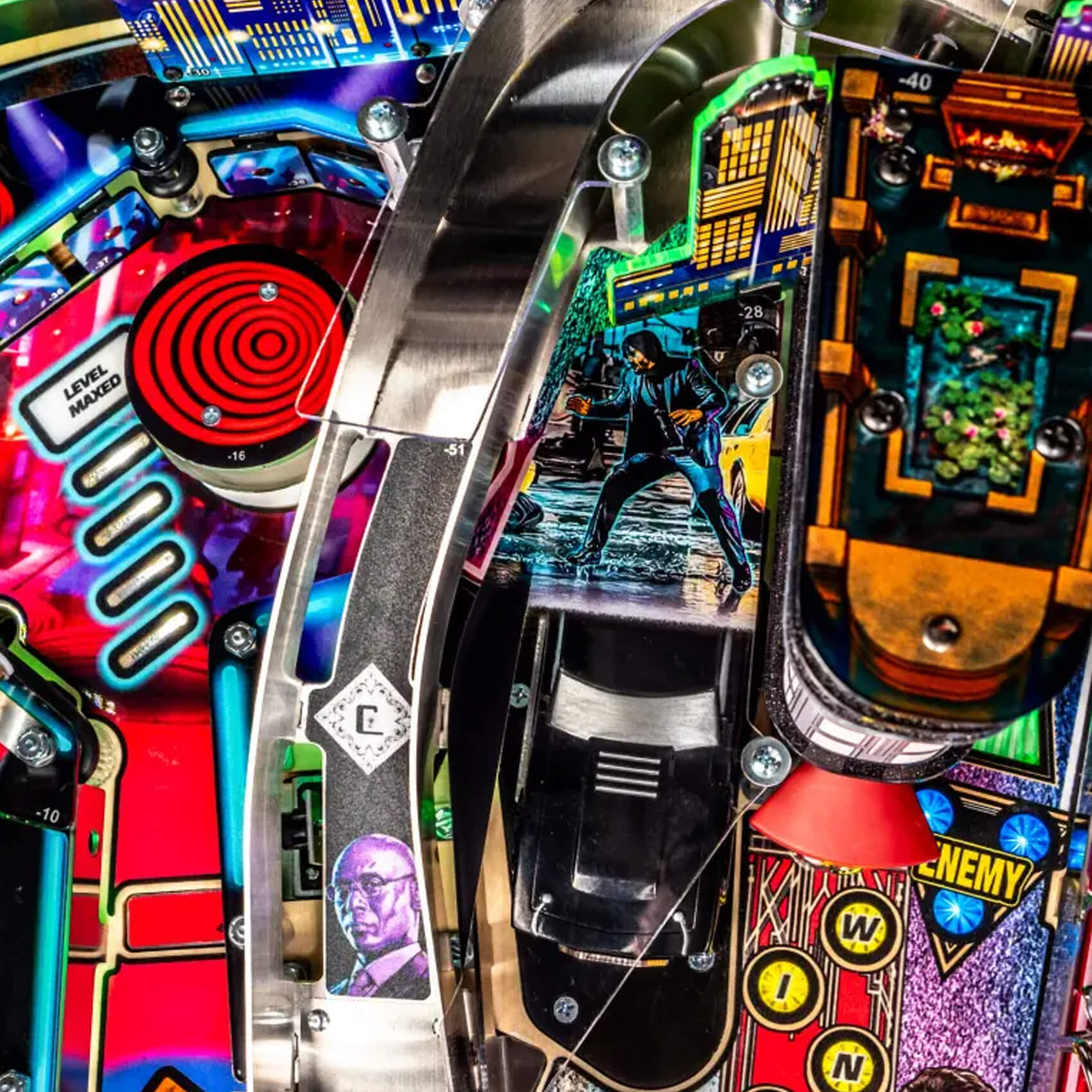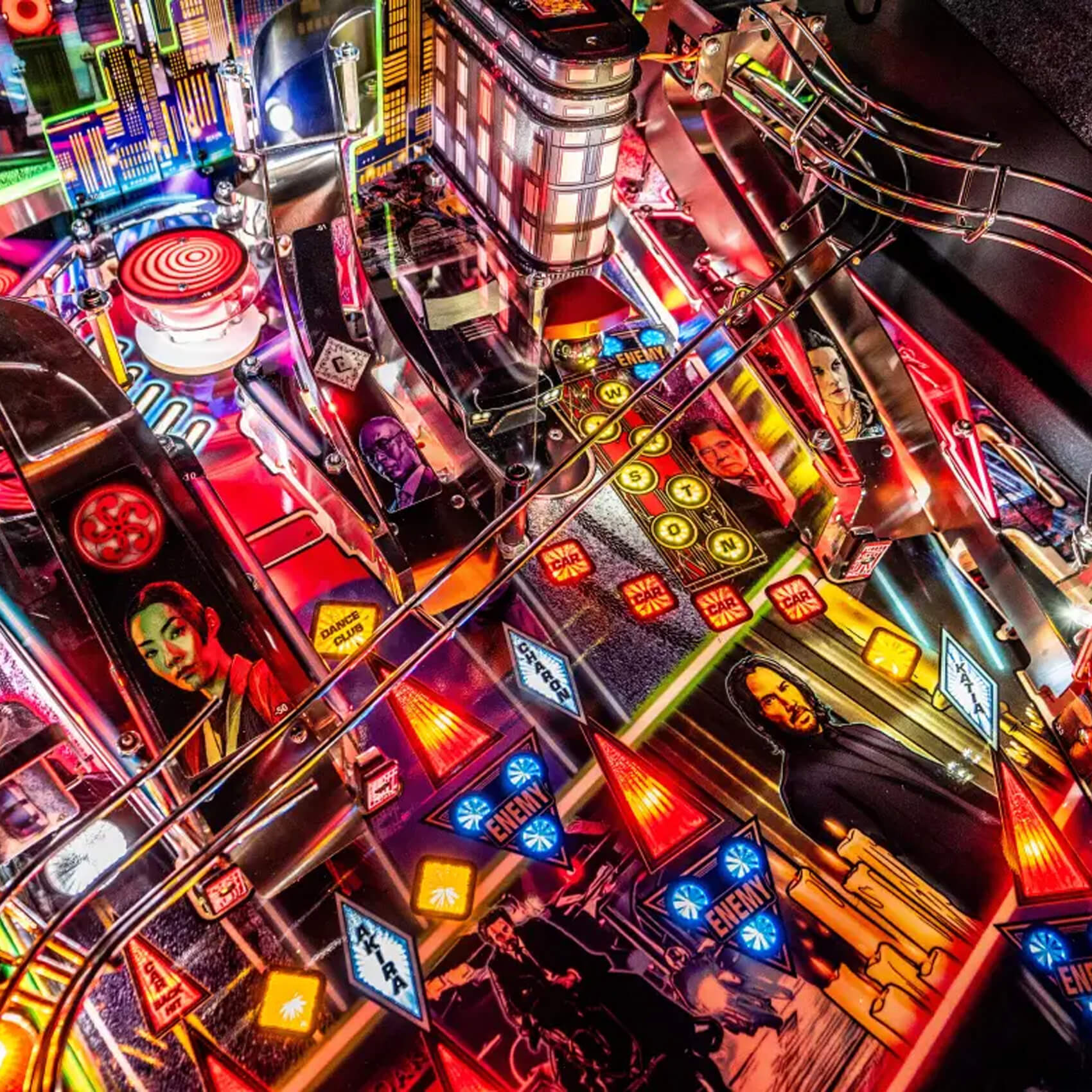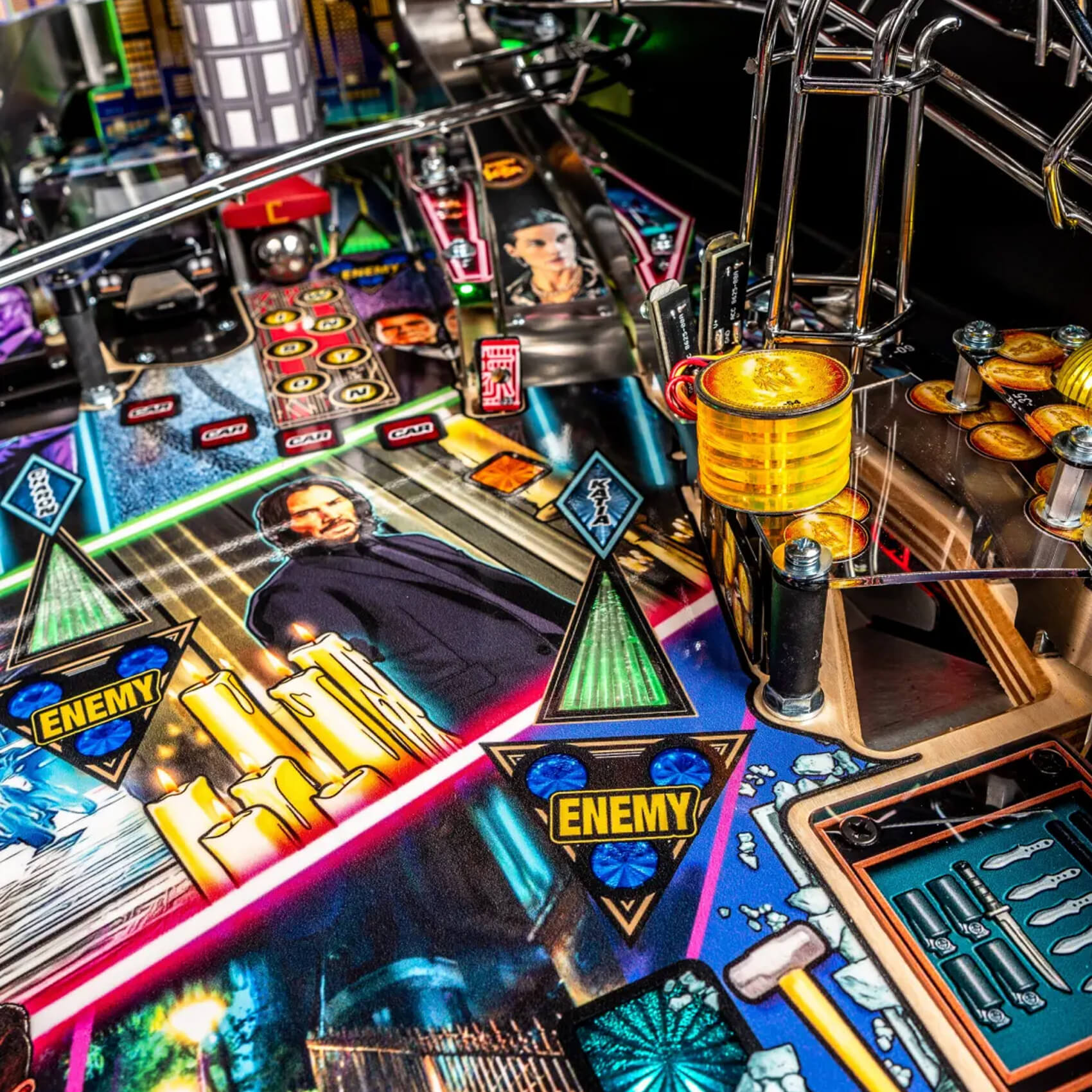 Beautiful edge lighting surrounds the playfield and illuminates the New York skyline in a gorgeous noir-style visual feast. Insider Connected technology gives increased playability, including new contracts and the ability to connect with other players. Stern's John Wick takes pinball firmly into the future with true AI functionality, addictive playability and a multimedia feast for all the senses!