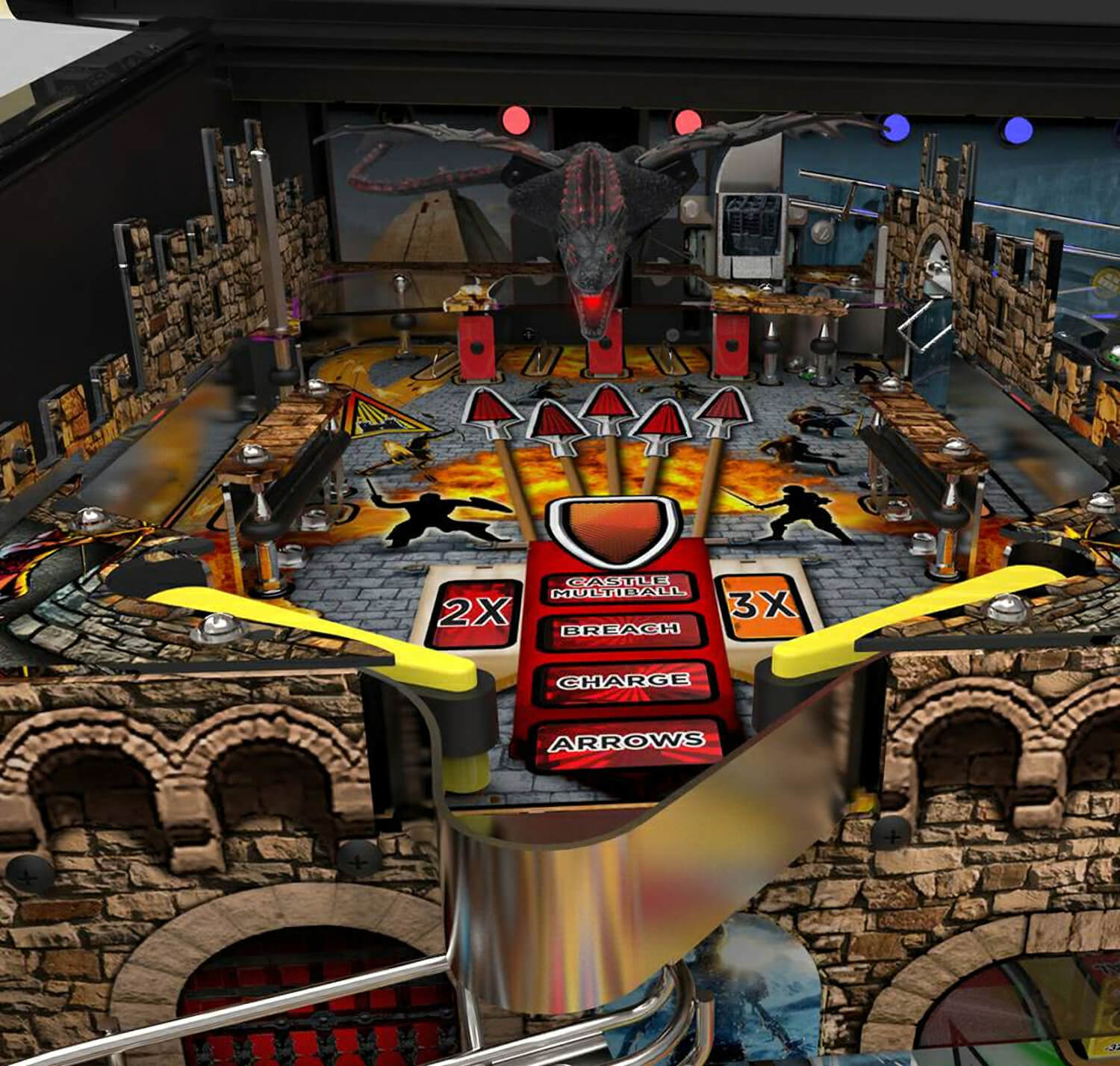 The Limited Edition features exclusive artwork by Pinball design legend Bob Stevlik. Daenerys and Meereen look over the playfield from the mirrored back-glass, while each cabinet in the run features hand-painted scenes of the Targaryen Dragons and other key characters, as well as laser-cut side armor, unique buttons and hinging, and gloss black coating over the legs.