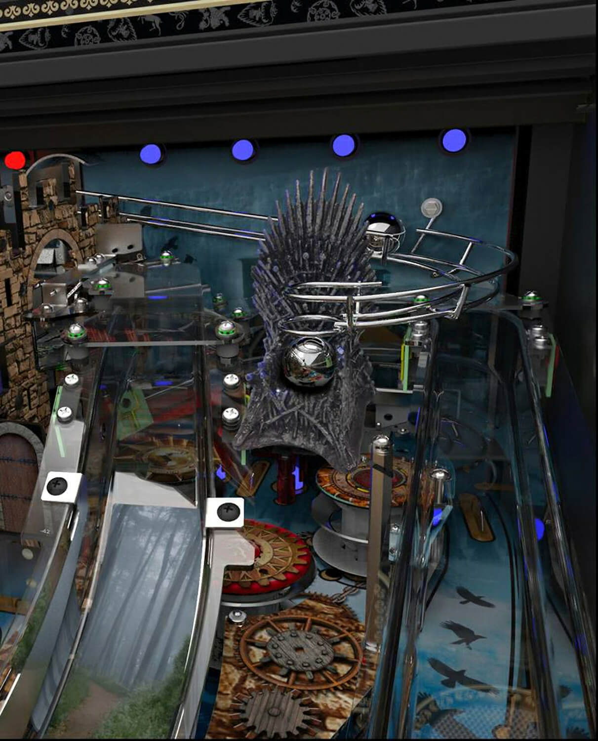 The whole table boasts vibrant full spectrum colour-changing LEDs that react to your play style An Iron Throne model to hold your ball while you celebrate the victories of your match! The Premium machine also shares features in common with the Pro and LE versions: The Battering Ram can be used to take out the Castle Doors.