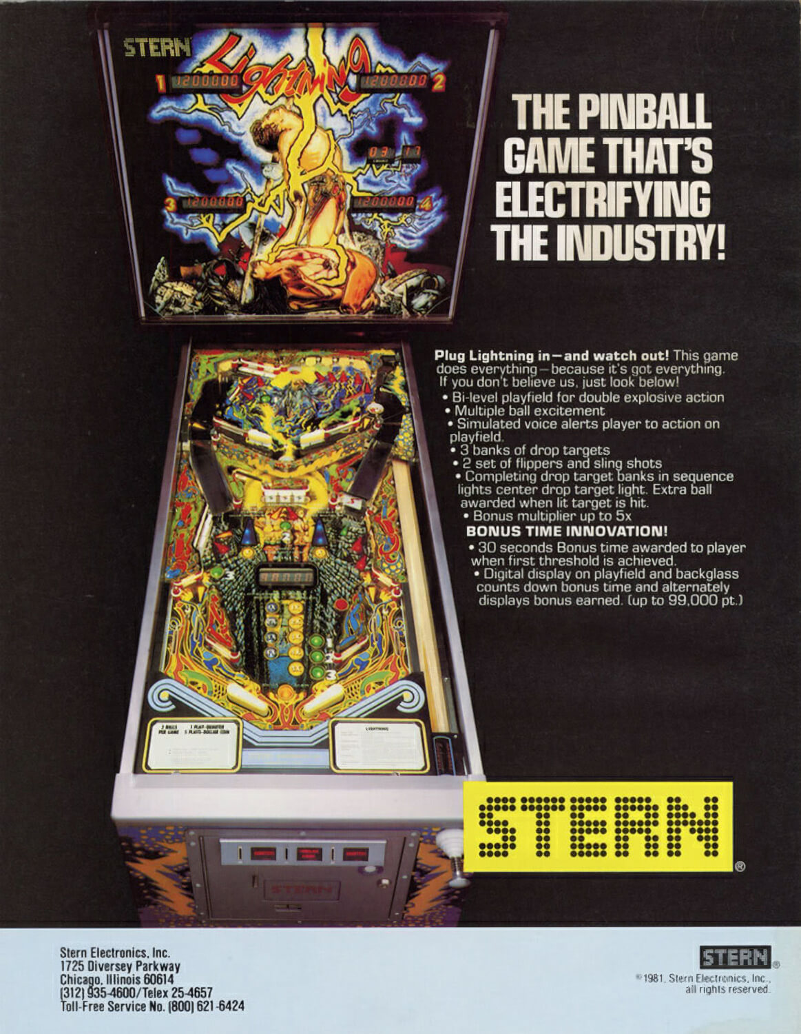 Lightning is a fast, hectic pinball machine by Stern. It was released in 1981 to players who loved its split-level playfield, critical drop target shots and Viking theme.