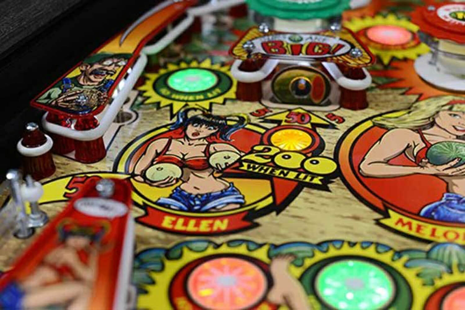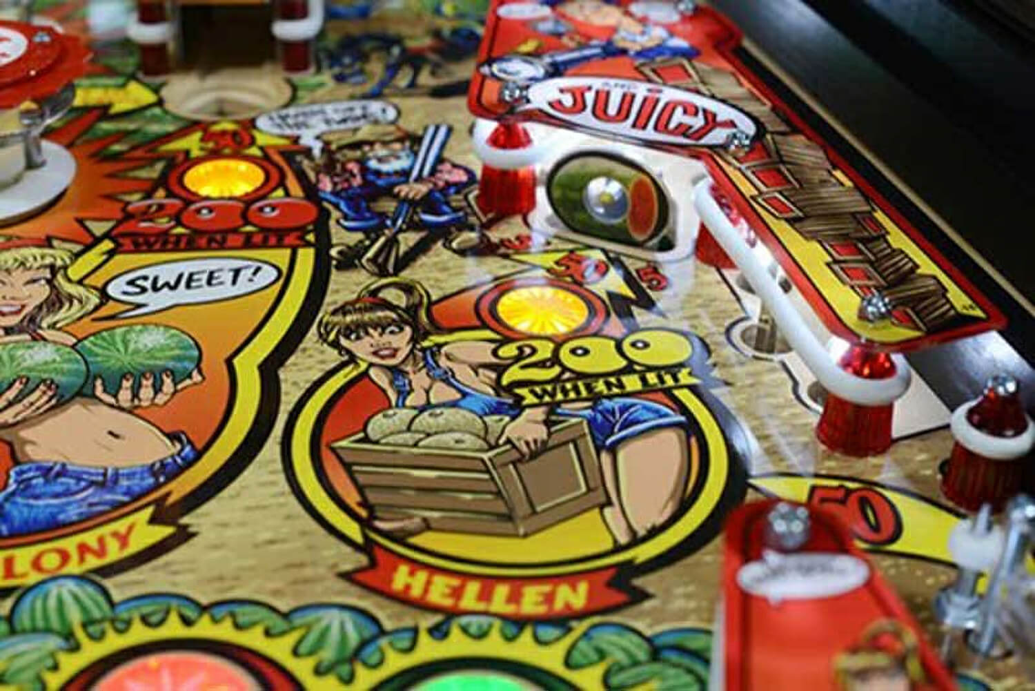 This machine was built using the new SPIKE platform, offering improved audio capability and better technology compared to older pinballs. Entertaining character voice over's and music bring the melon farming game to life!