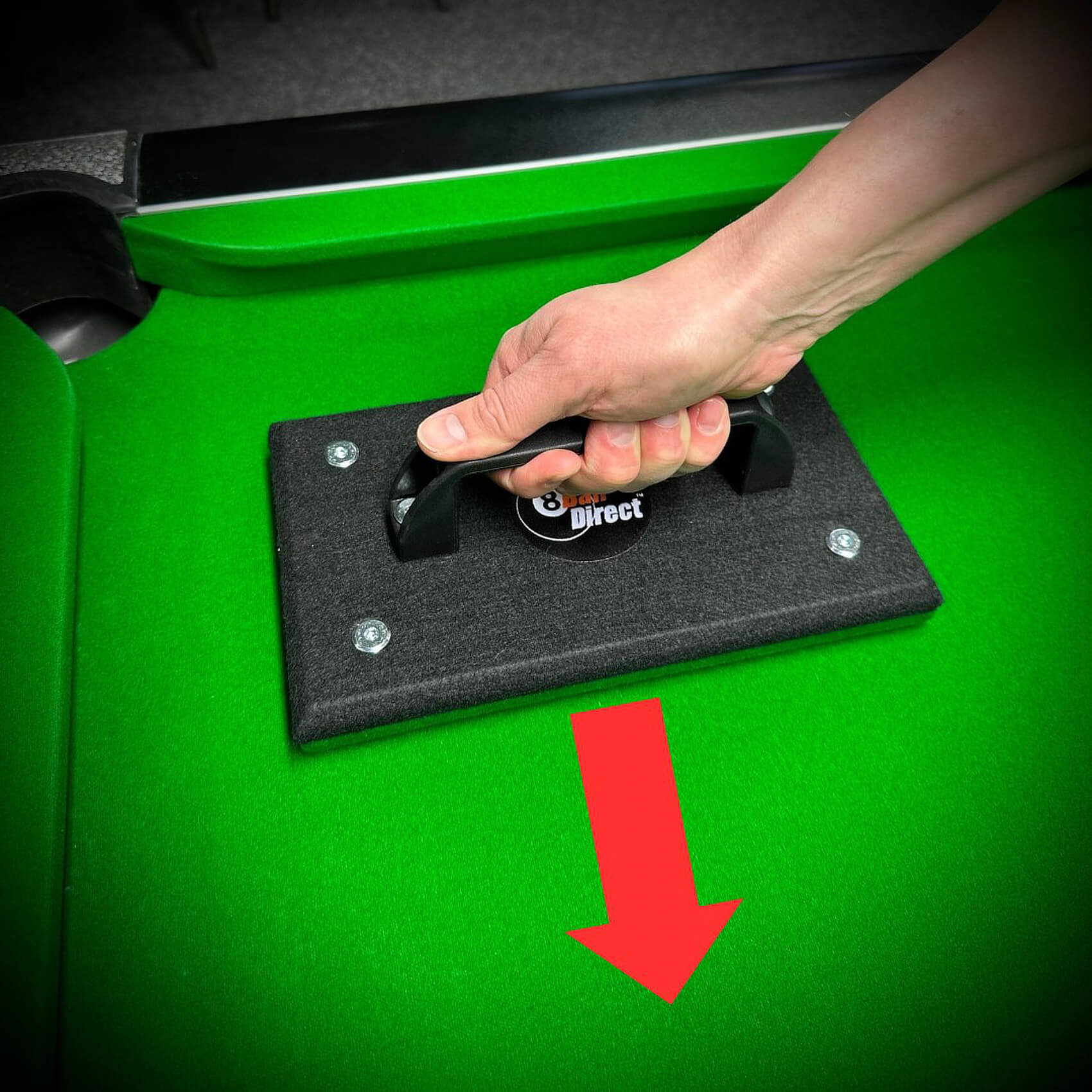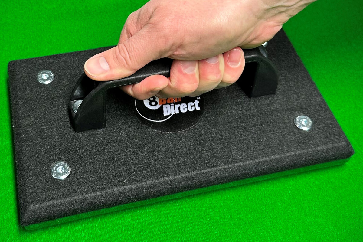 On British pool tables and also on snooker tables, the woollen cloth is 'napped'. This is a directional weave where the fibres of the cloth sit in a particular direction. Over time, the nap can be disrupted or flattened, which can eventually affect accurate gameplay. In this case, use the Napping Block to reset the direction of the nap and refresh shot accuracy.