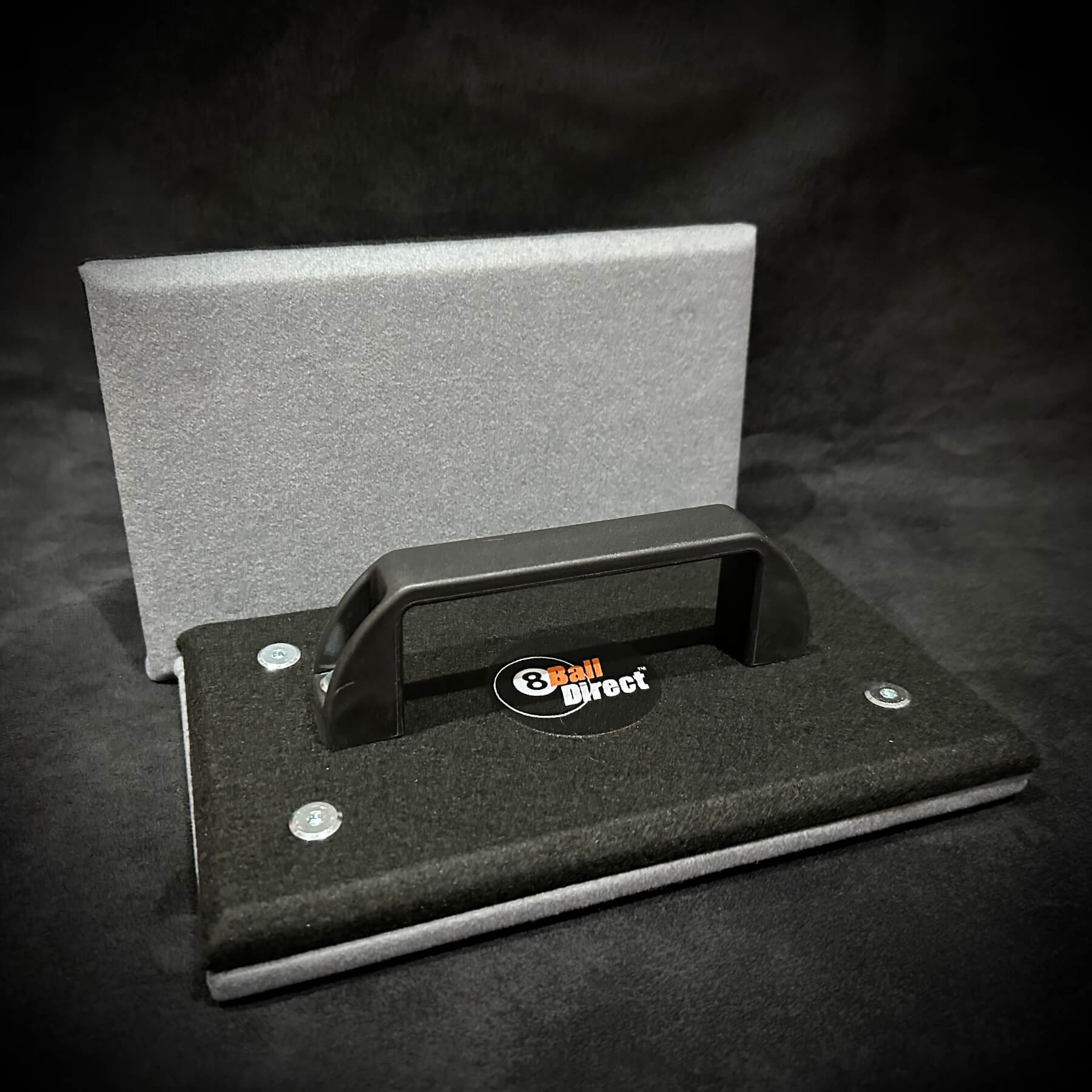 To use, start at the baulk end of the table. Push down firmly and run the block down the table following the direction of the cloth nap. Repeat across the table in strips (like mowing a lawn), always starting at the baulk end and finishing at the far end. In just a few minutes, your napped cloth will be reinvigorated and playing beautifully once again! With detachable moulded handle and base for cloth replacement, one spare cloth included, and supplied in your choice of grey or green.
