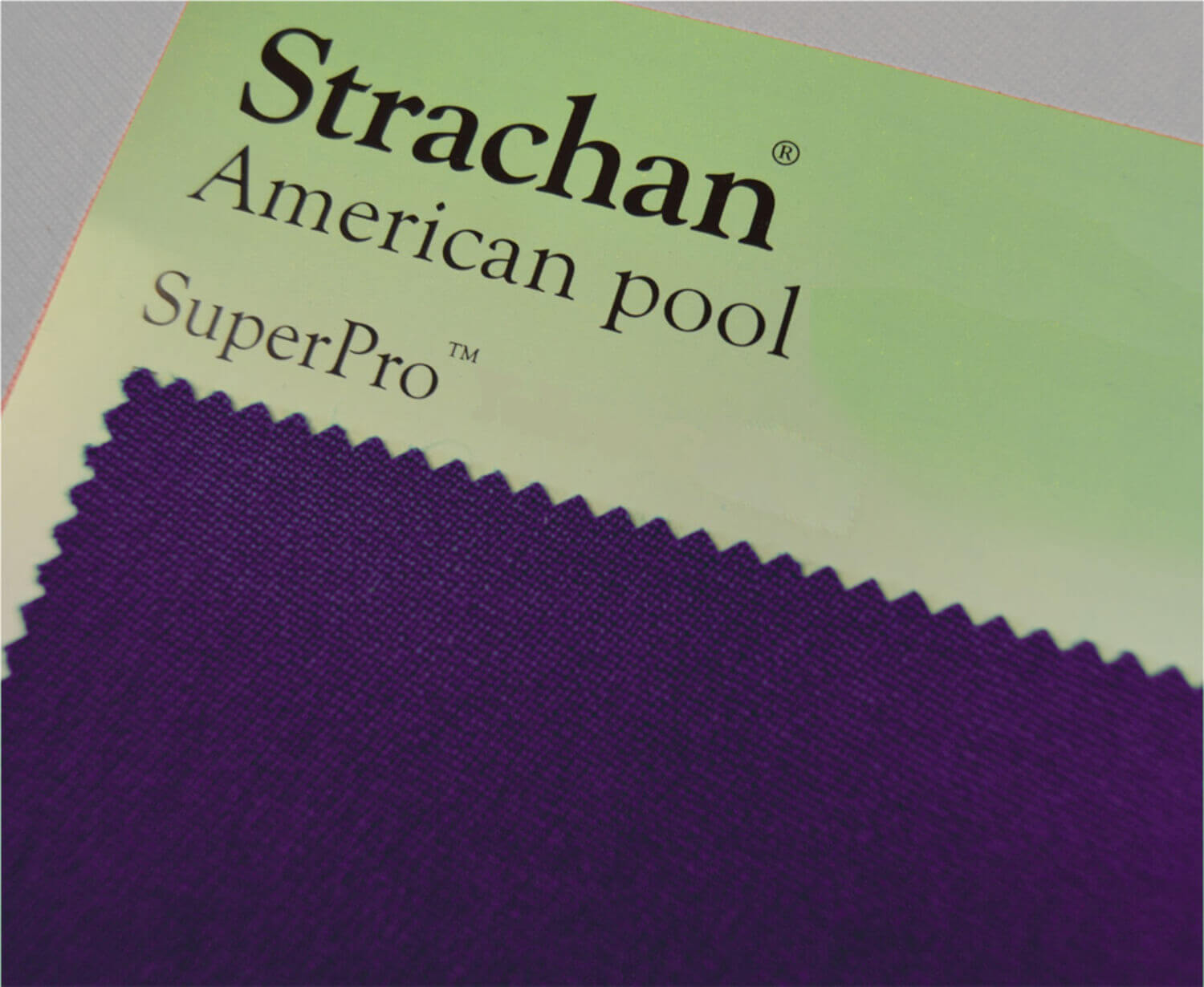 Strachan SuperPro - a premium worsted American pool table cloth. Strachan is well known for producing some of the finest pool and snooker table cloths in the world. With over 100 years of experience in manufacturing woollen fabrics, their expertise creates cloths with consistent performance and elegant style.