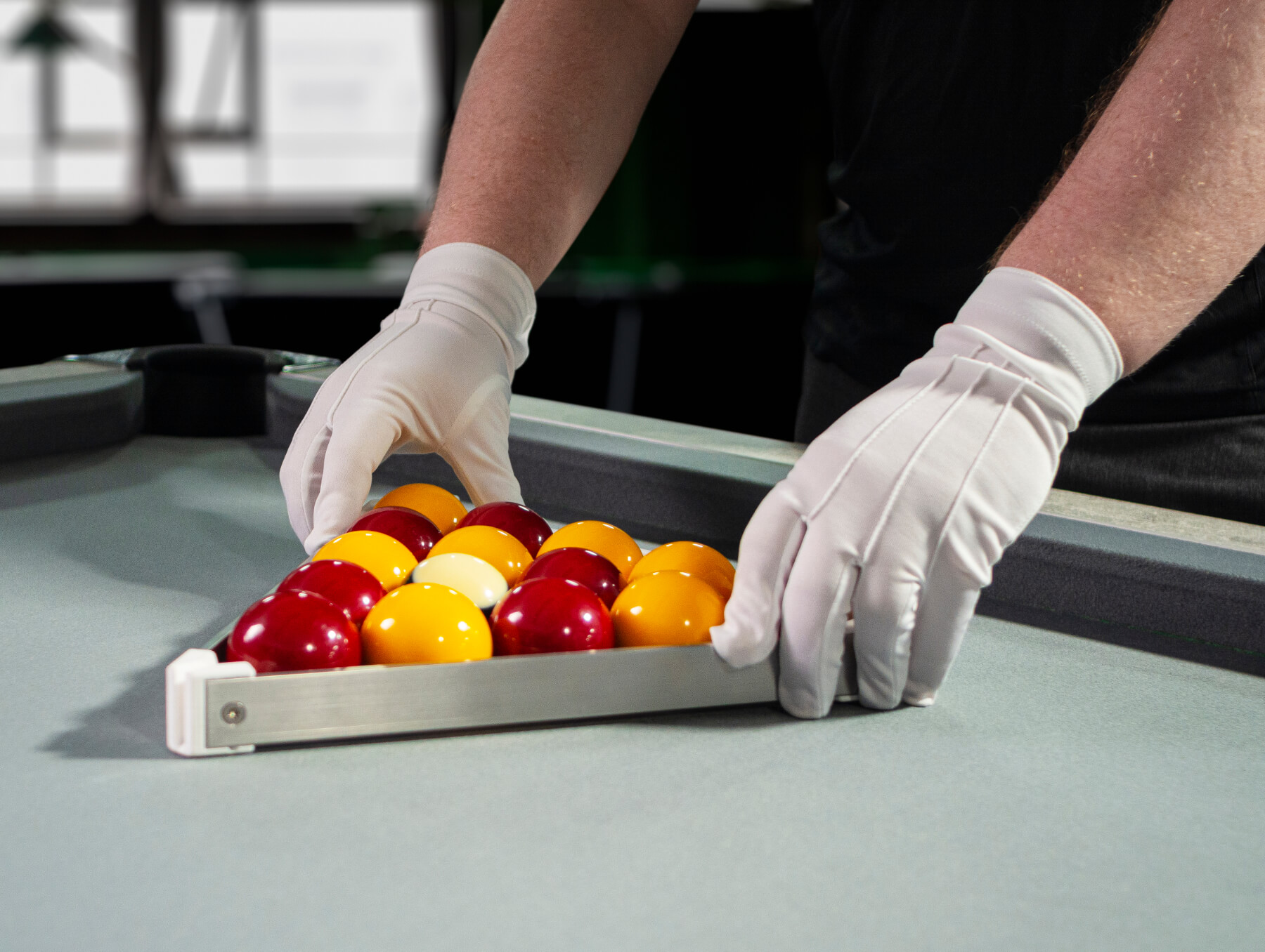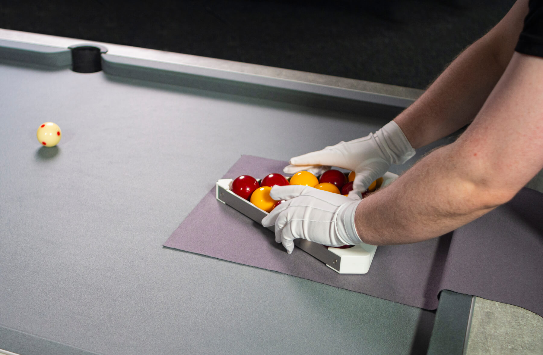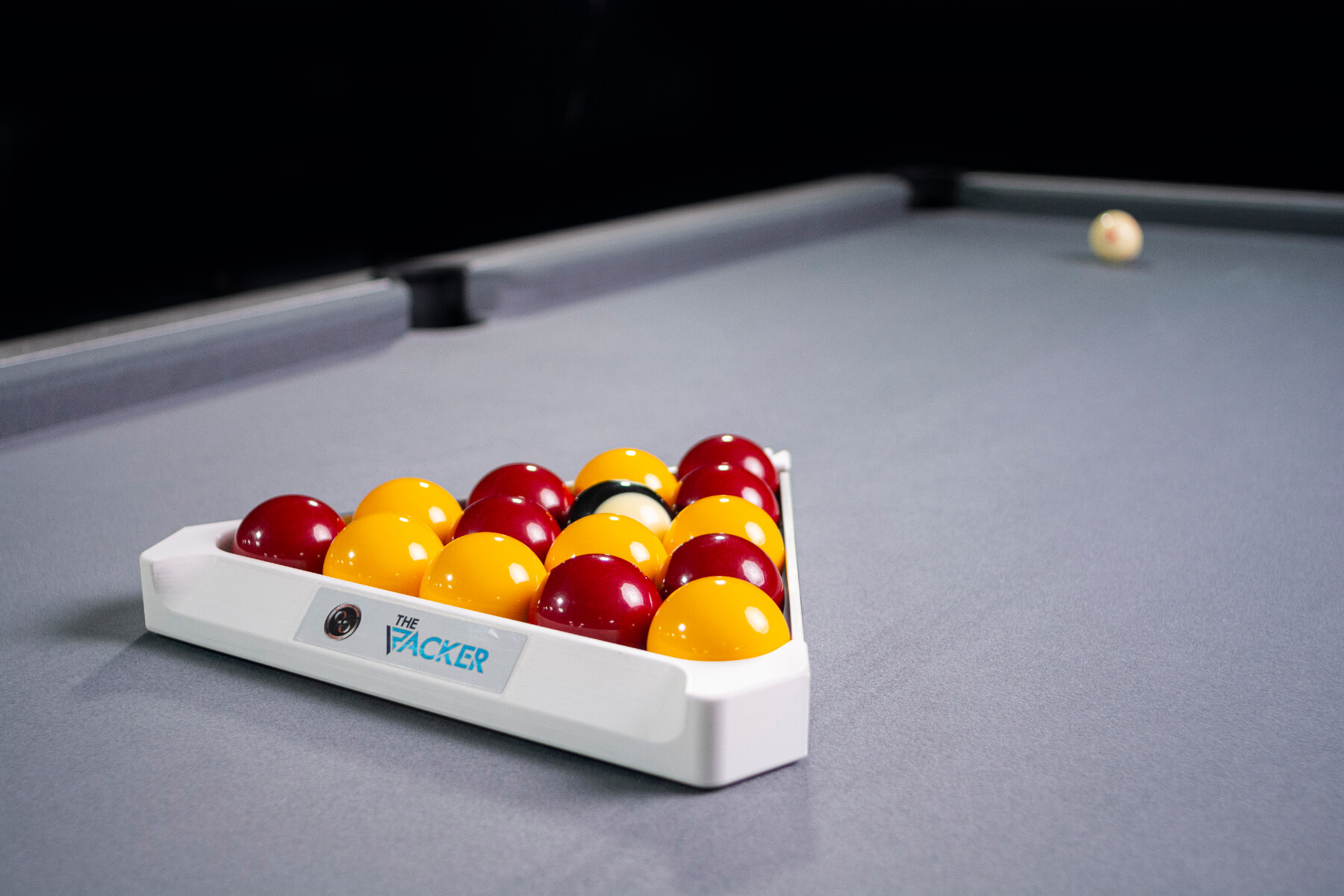 The Pro Racker allows you to precisely calibrate each rack when you're setting up a game of English pool with 2-inch balls. Instead of dropping the black ball onto the spot, which can eventually damage your cloth, you can use the slot on the front of the triangle to set its position.
