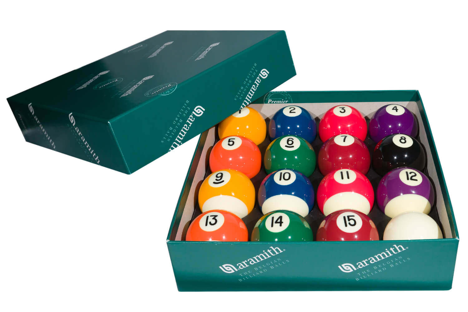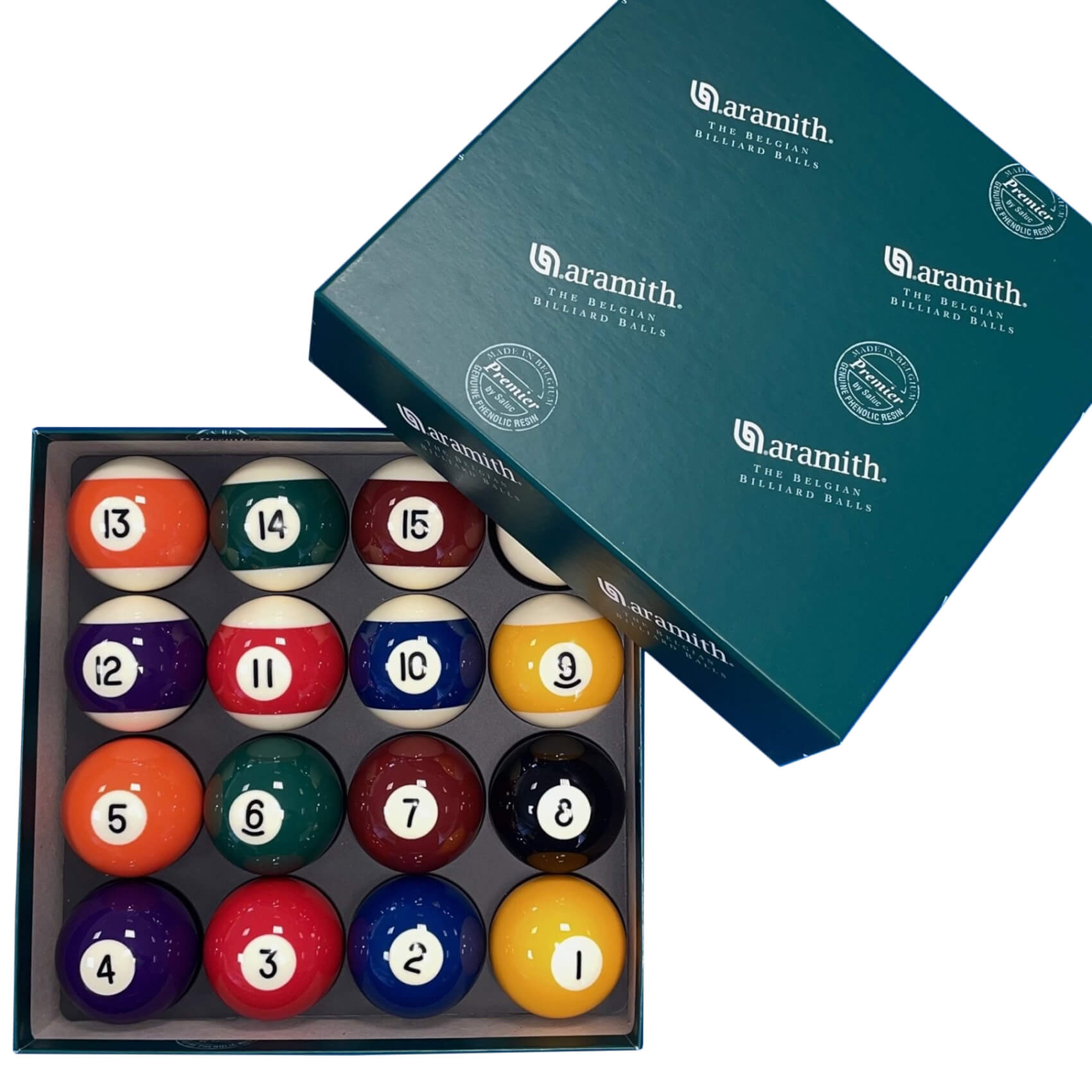 An incredible set of genuine Aramith numbered American size pool balls! Aramith are regarded as the leading manufacturer of Billiard balls in the world and are manufactured from high quality phenolic resin. It is this material that provides the balls with enough elasticity to retain their shape, weight, balance and colouring.