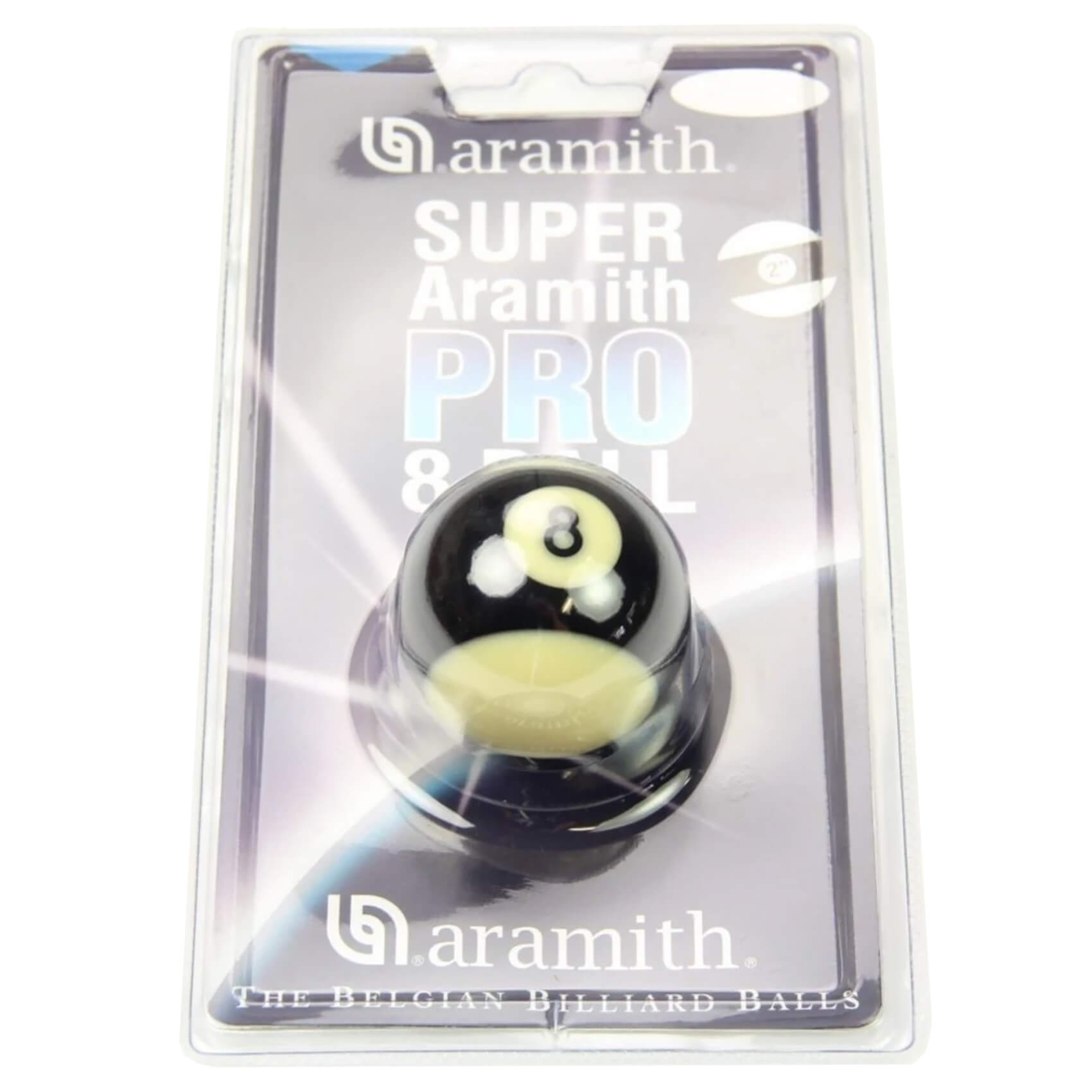 The Super Pro Striped 8 Ball is available in a 2-inch British-spec size and is intended for use on British pool tables. Its made by Aramith to meet the strictest tournament specifications for consistent accuracy, power delivery and rebound performance.