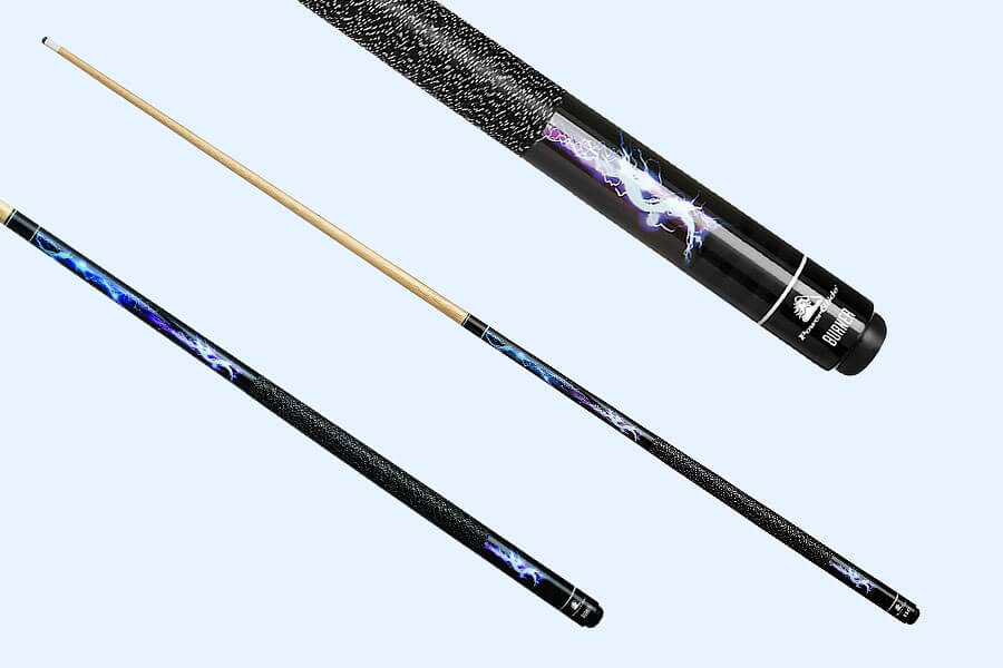 At 57 inches, the PowerGlide Burner is a full-sized cue that can be separated into two even halves via the joint crafted right in the middle, reinforced with a strong plastic collar.