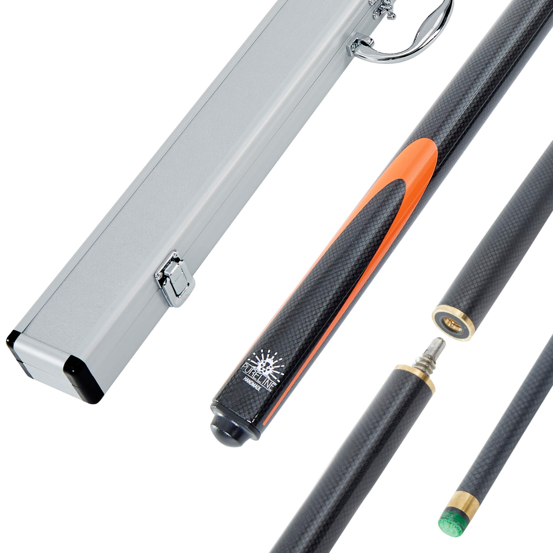 When the game's away from home, the Panther matches beautifully with the Pureline Protect Aluminium cue case. This tough, strong case features a lightweight aluminium outer shell, complete with secure snap-close latches and with reinforced metal bumpers on the ends and edges. An elegant central fastener keeps your cue where it should be - safely snuggled up inside the padded foam internal recesses.