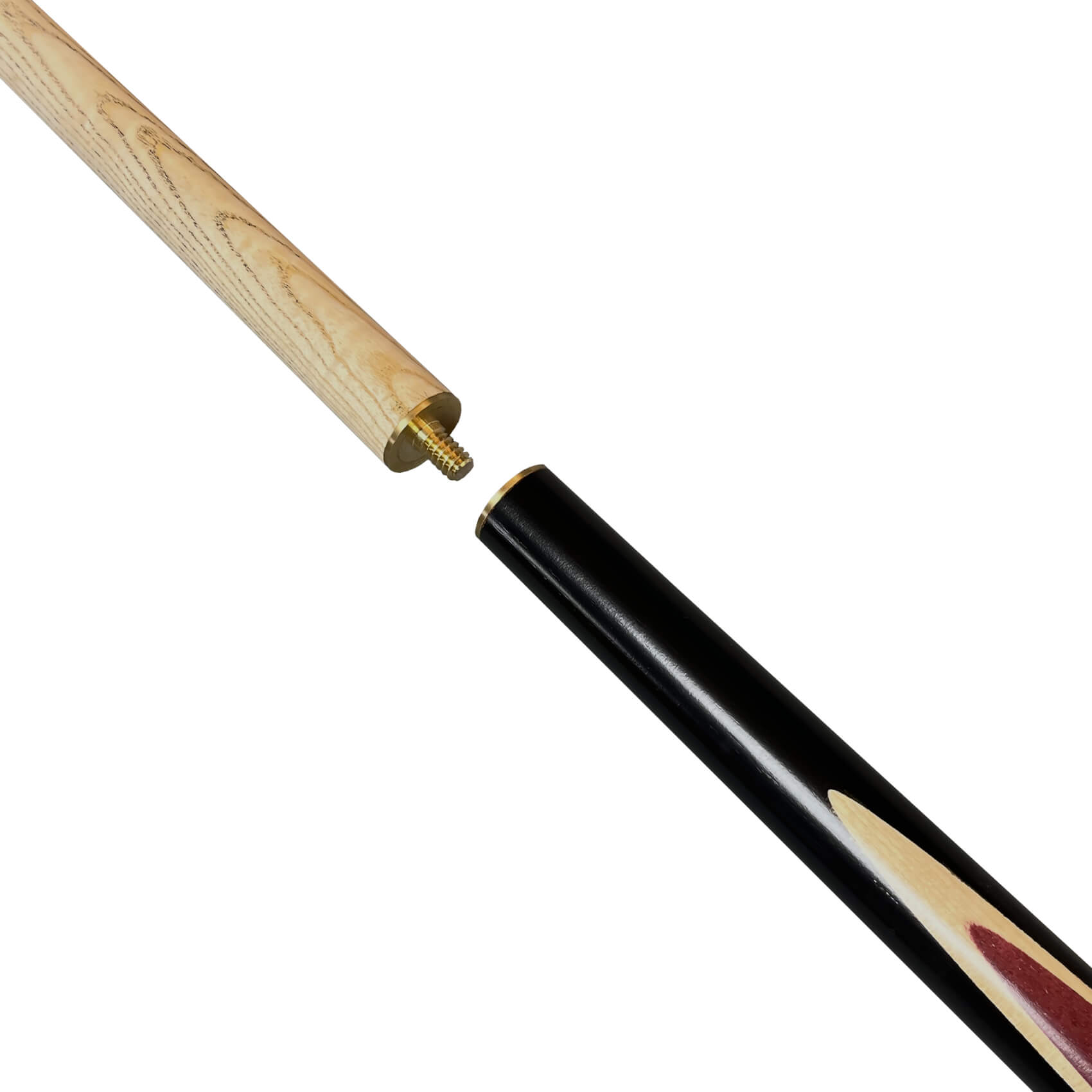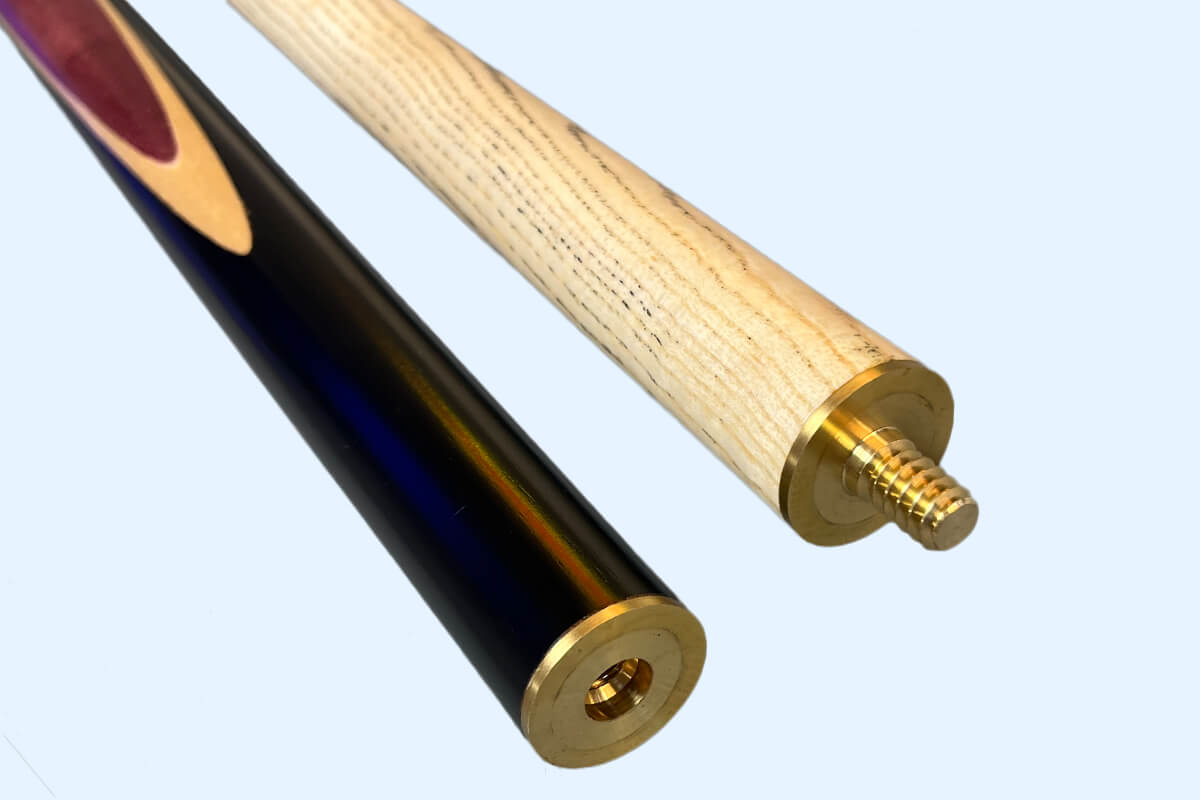 At the 3/4 position is a brass screw joint. It's machined precisely for a tight fit that transmits all of your shot power directly from your arm to the cue ball. When the game is over, 'break' the cue at the joint to reduce its length for portability or storage. It's also very useful for those games rooms where access is limited by furniture or walls - simply remove the butt to gain more clearance.