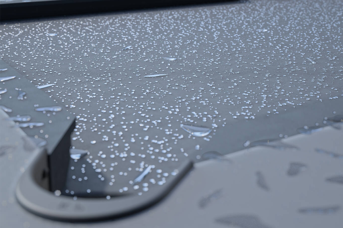 Outdoor tables are equipped to overcome this. Purpose-made outdoor cloths are usually made from artificial, plastic-based fibres such as nylon. Often, premium outdoor cloths will be prepared with anti-fungal treatments and colour protection to mitigate against UV bleaching from the sun.