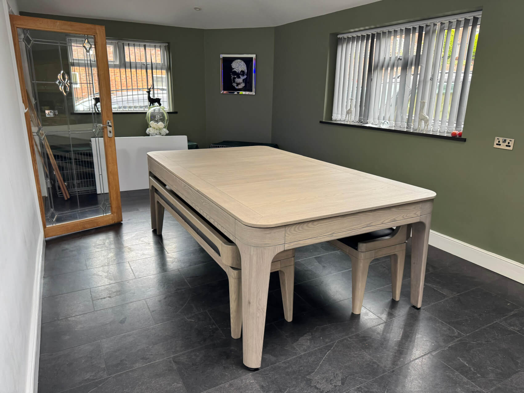 Those real leather pocket liners help to deaden the sound of balls being potted, but also provide a safe, non-slip resting place for dining tops. The pockets themselves are drop pockets that will collect balls as the game goes on, ready for retrieval and re-racking at the end. When topped with a premium speed cloth, the Malta is ready to satisfy even the most demanding of pool players.