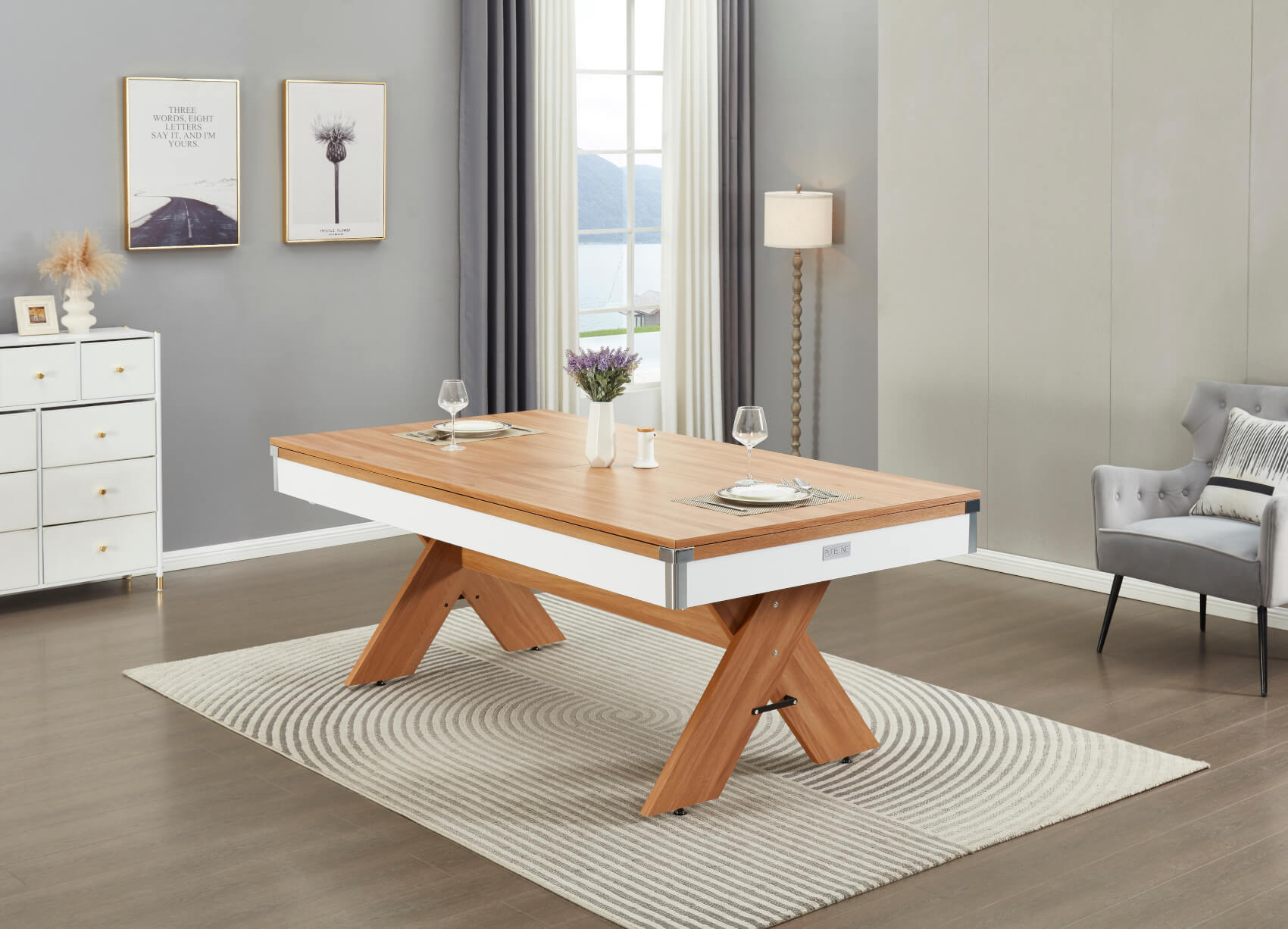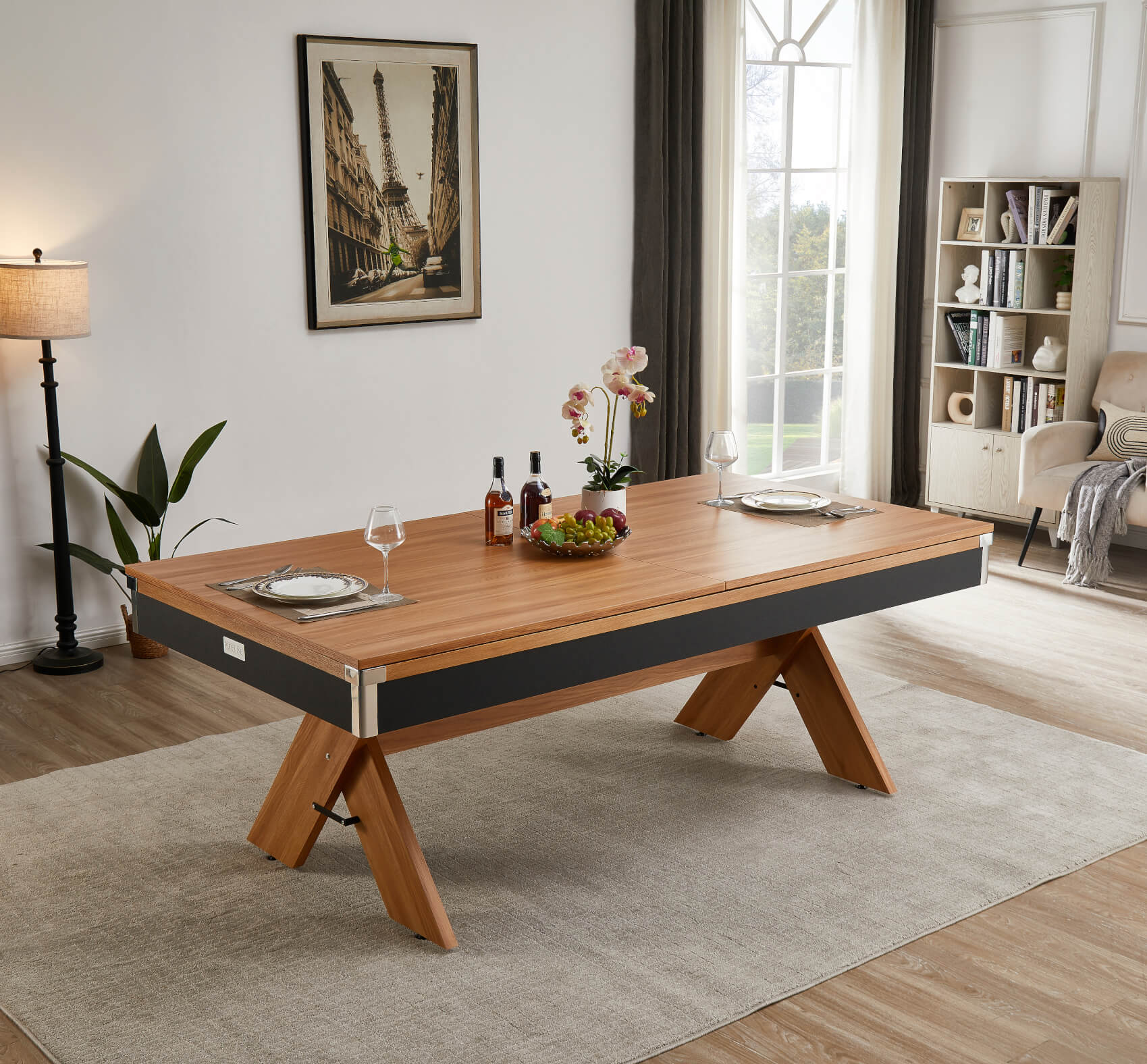 It arrives complete with a set of matching lift-on table tops. The standard top surface is ideal for use as a family or communal dining table, with plenty of space for all your dining essentials. It can also work well as a home office desk, or as somewhere for the kids to do their homework. But flip the tops over - or 'Twist' them - and a gorgeous baize cards-playing surface is revealed. It's perfect for those after-dinner poker nights!