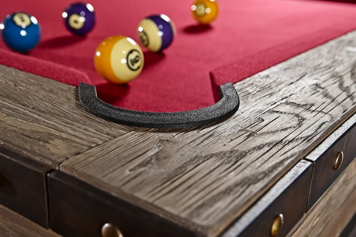 It provides Brunswick's patented SuperSpeed® Cushion Rubbers which are fitted on the inside of each of its top rails as well as built-in low profile drop-pockets, that collect pocketed balls for later use or storage.