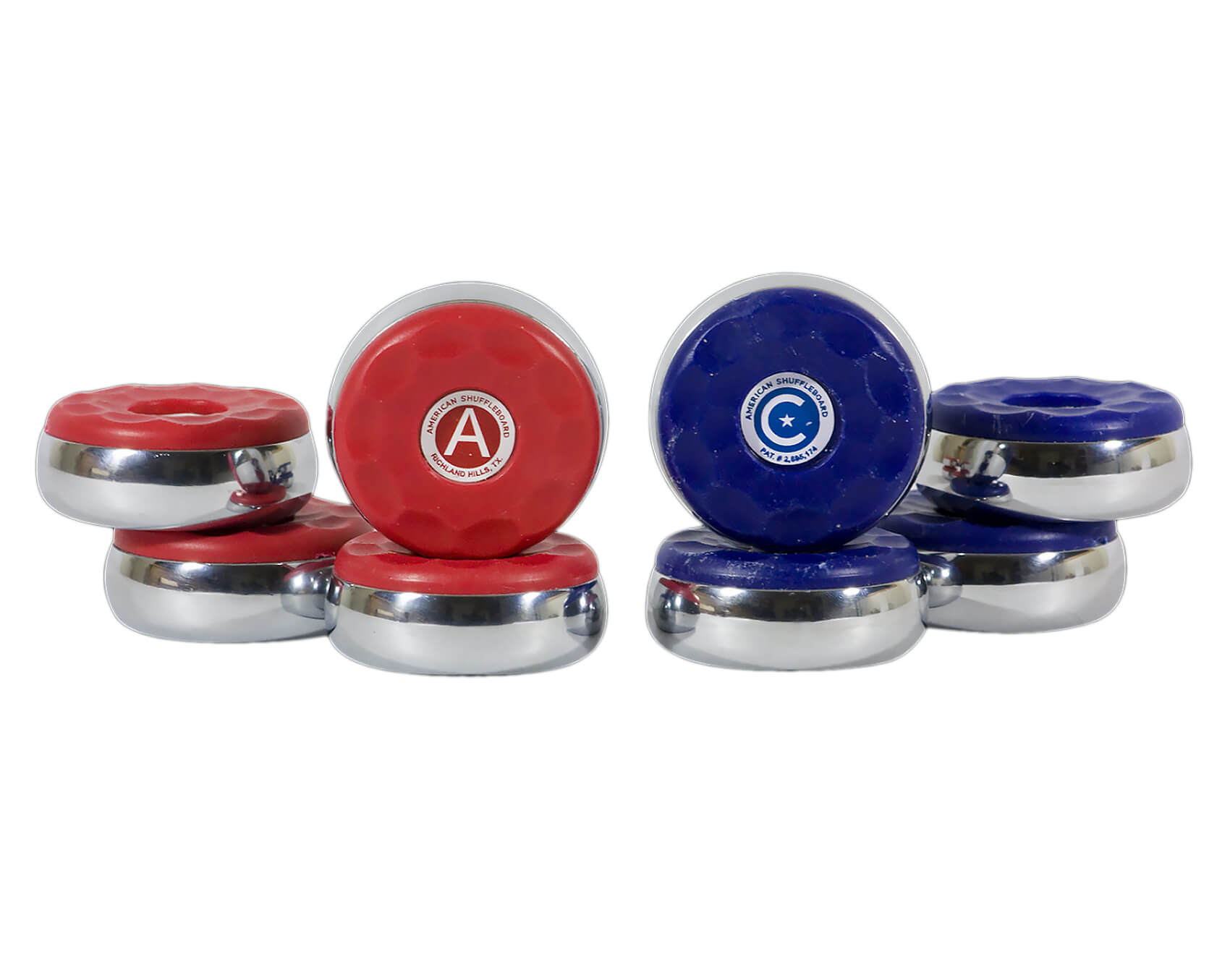 The Sun-Glo American Shuffleboard Large Puck Set is made from chrome-plated steel that is designed for use on shuffleboard play surfaces in indoor commercial or home entertainment settings.