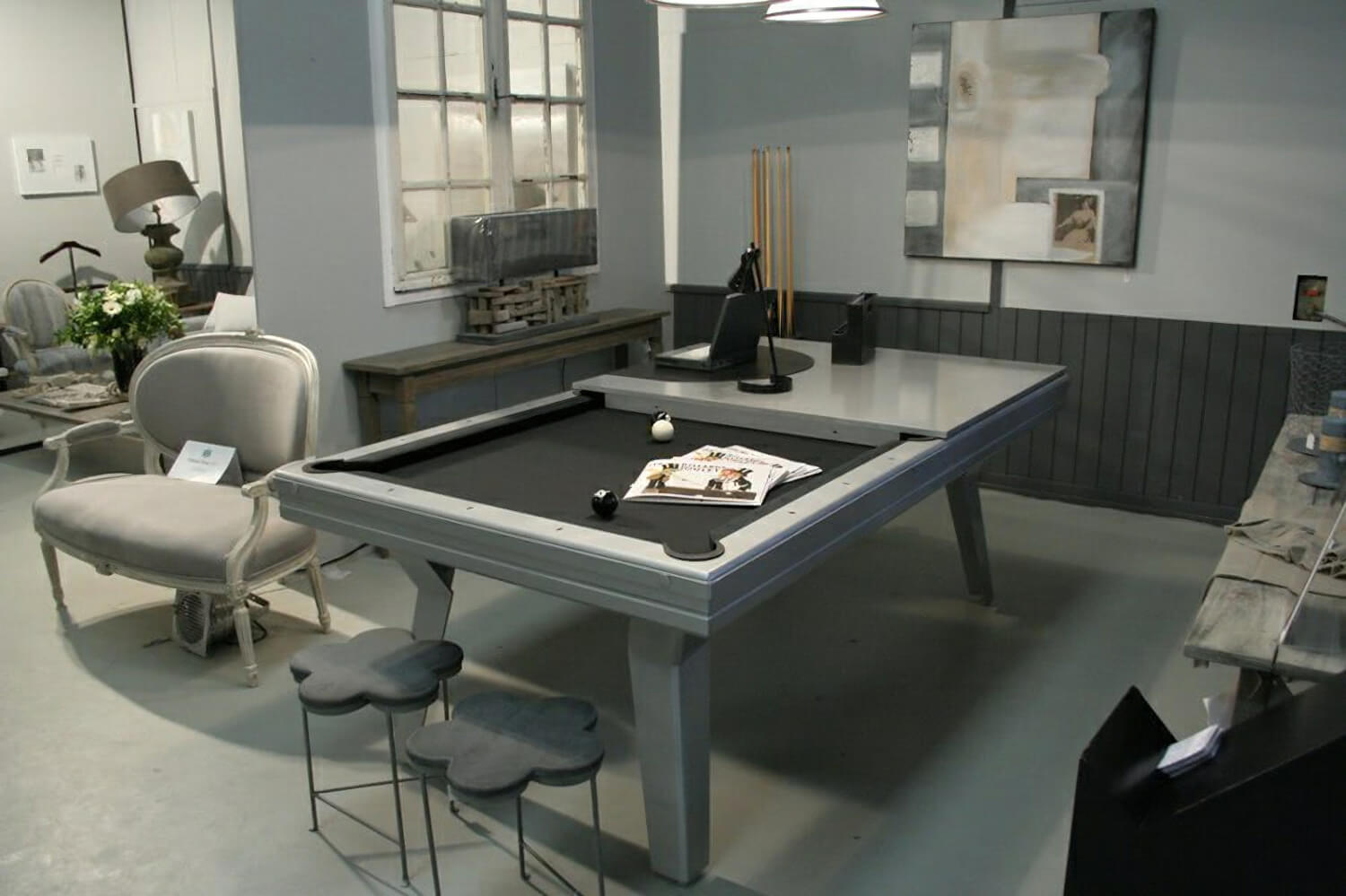 A Luxury contemporary styled Snooker table made from highest standard hard wood and finished to a high quality! The contemporary styled POP table is manufactured by the famous Billard Toulet factory and is a deluxe English snooker table with a slate playing surface.
