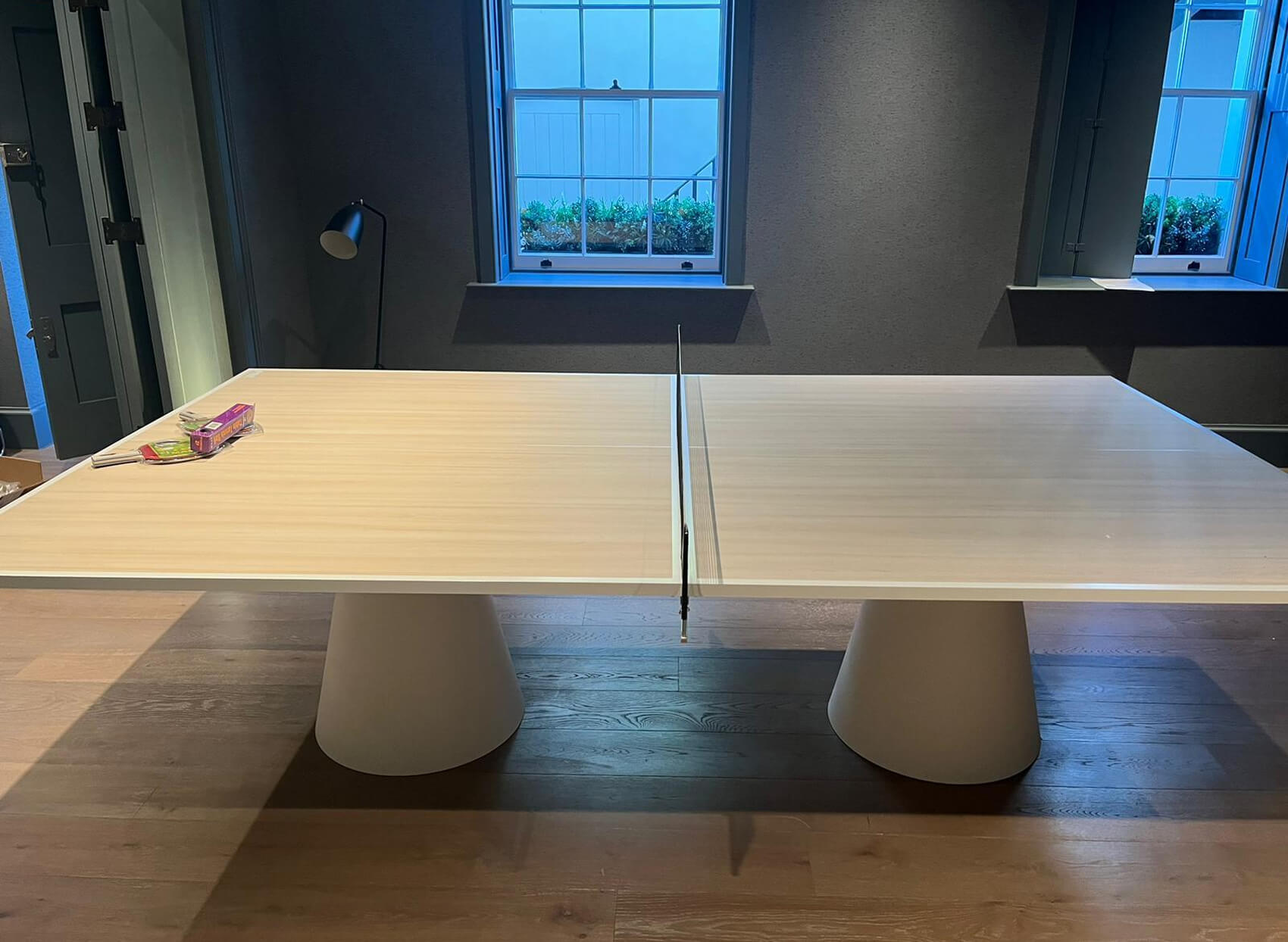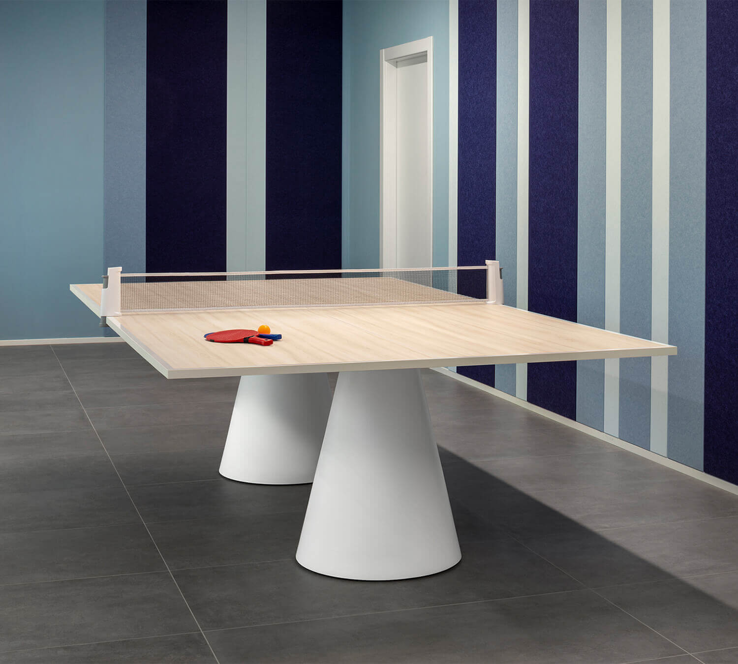 The Dada comes in two sections that can be moved independently, allowing you to configure your perfect set up. Attach the two pieces with the net to create a full-sized ITTF-approved table tennis field, or keep them apart as individual desks or tables. Or move the two halves together to create a large table that can seat up to 16 people – making it a great statement dining table, or even an office boardroom meeting space.