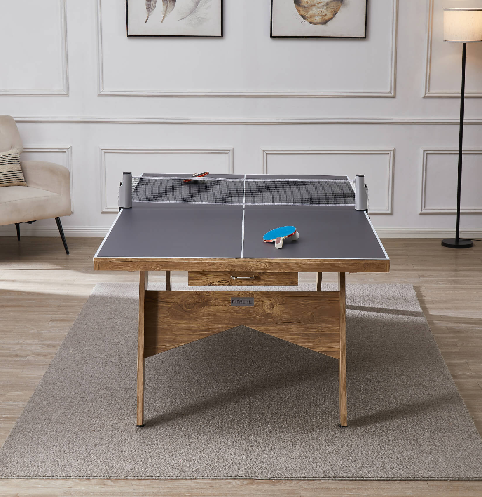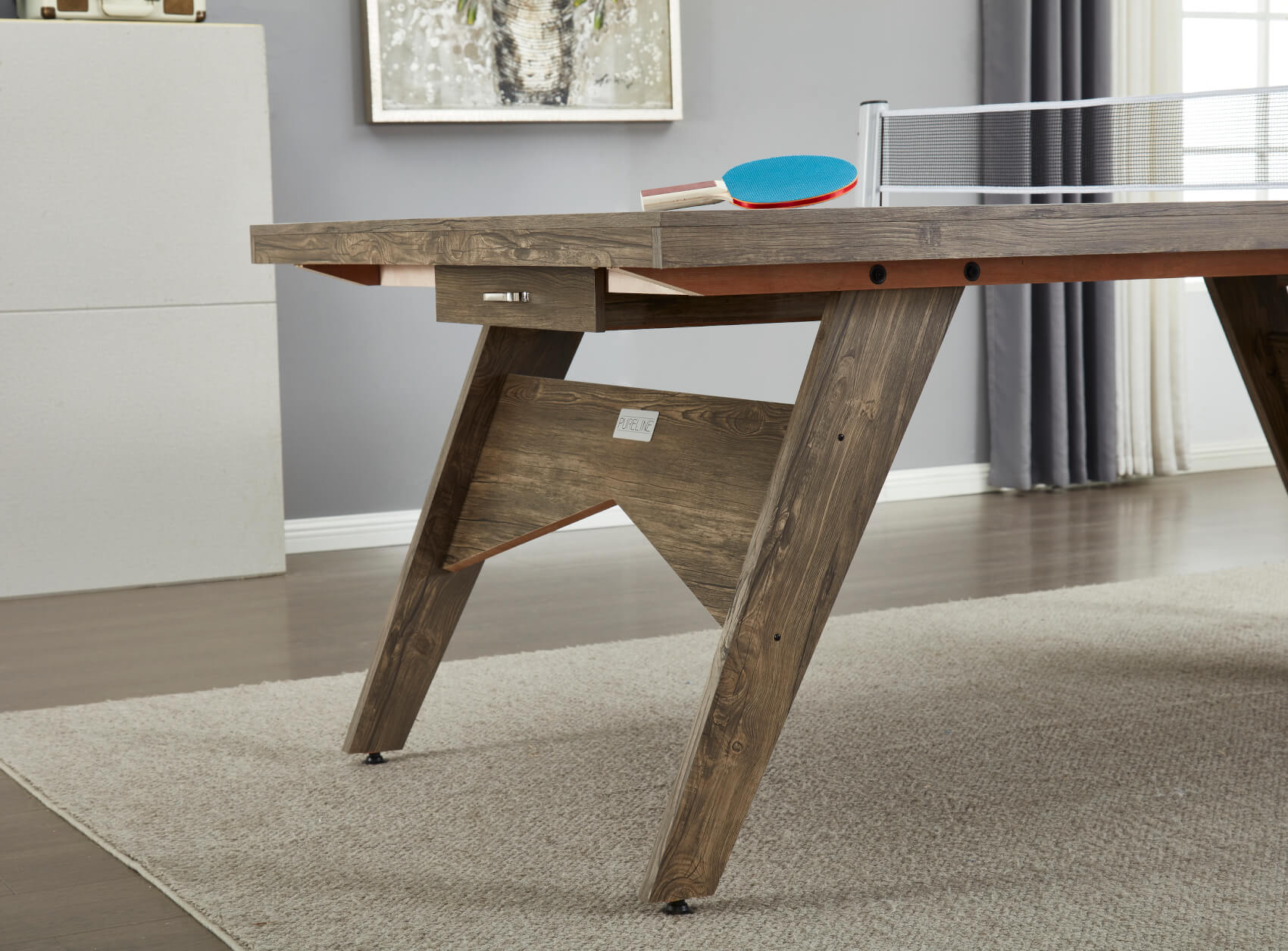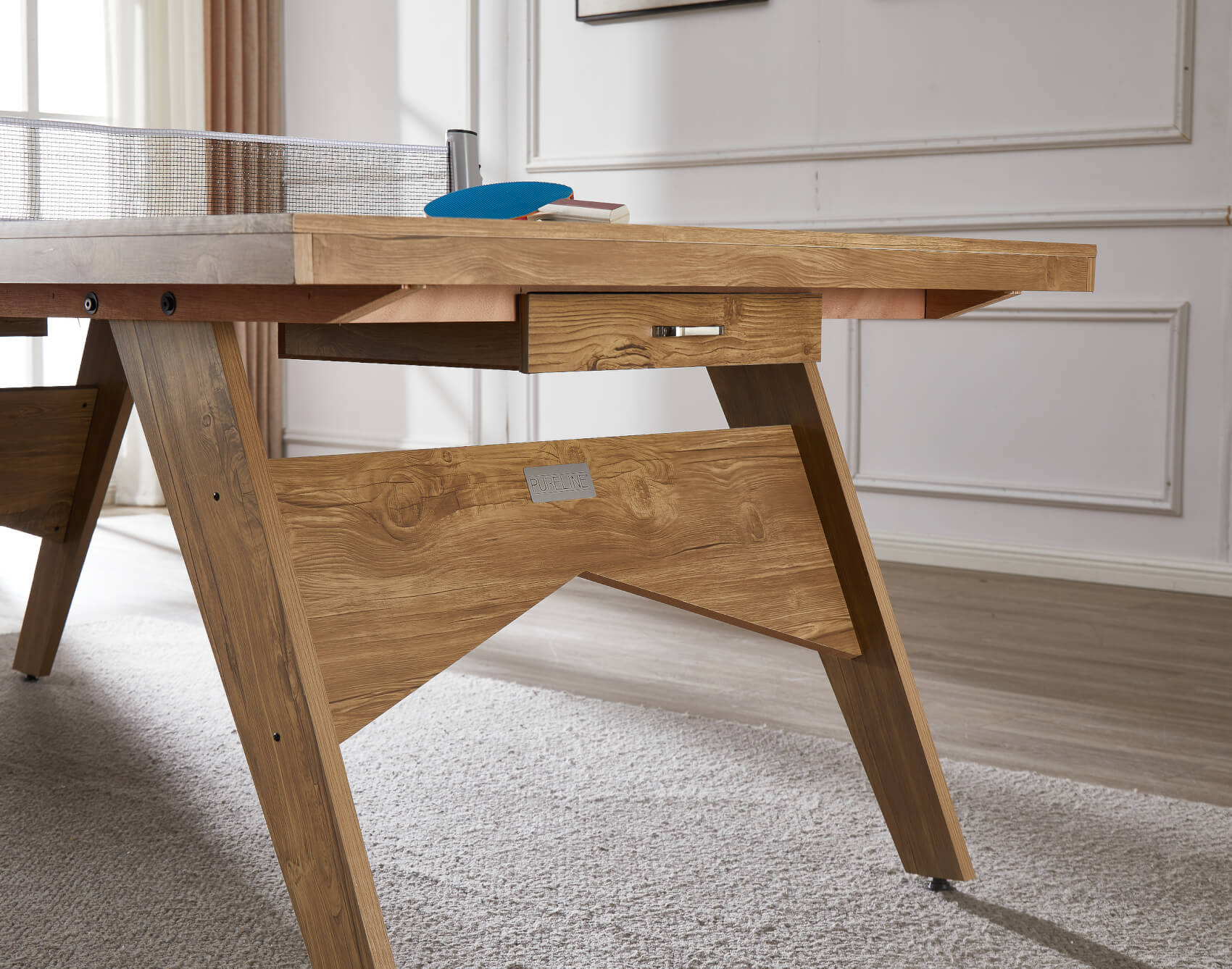 The Lifestyle is a 7ft table at 213cm long - that's smaller than the full regulation table tennis size of 274cm, making it easier to find installation space in busy homes. A generous space under the table of 70cm gives ample leg room for diners sat on benches or chairs. At each end of the table are unique pull-out storage drawers - perfect for keeping your bats, balls and net stored safely away after play.