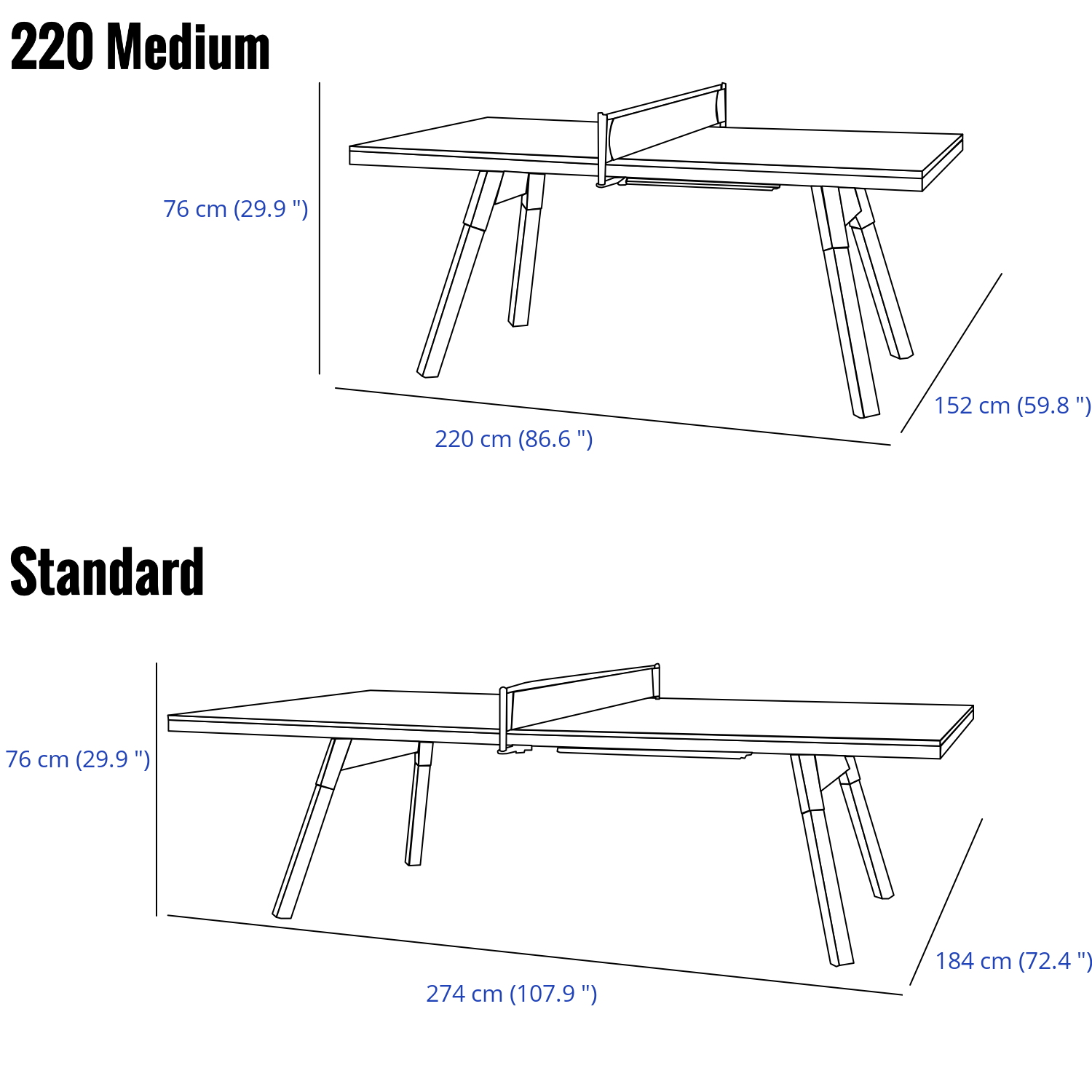 The You and Me inludes a regulation-size wooden table tennis play surface, that gives consistent ball performance and control during use. It's available in two different sizes to best suit your room requirements; either a standard, regulation table tennis size option or a compact 220 medium-sized option that's ideal for smaller home spaces.