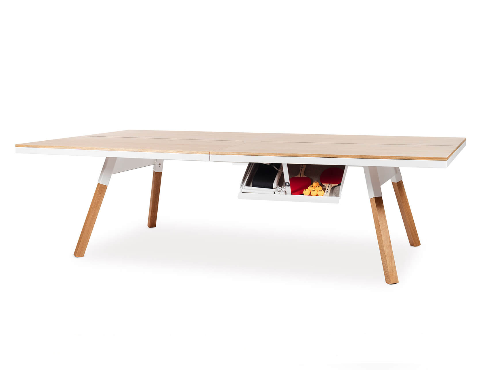 Take a step back and admire the You and Me Indoor Table Tennis Table by RS Barcelona! Its sleek, minimalist design is sure to stand out in any modern home living area, while offering true multi-use functionality for everyday life as a table tennis table, dining table, office desk and so much more!
