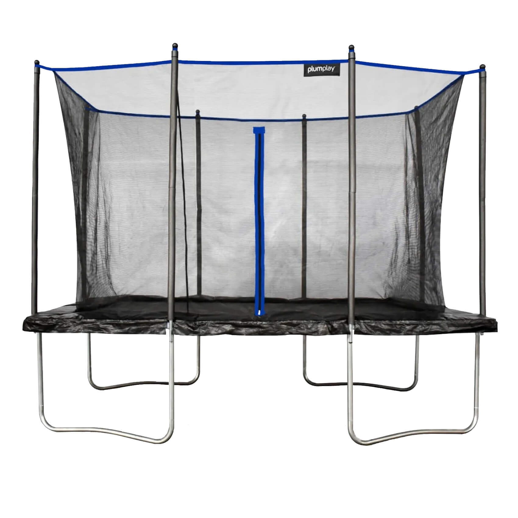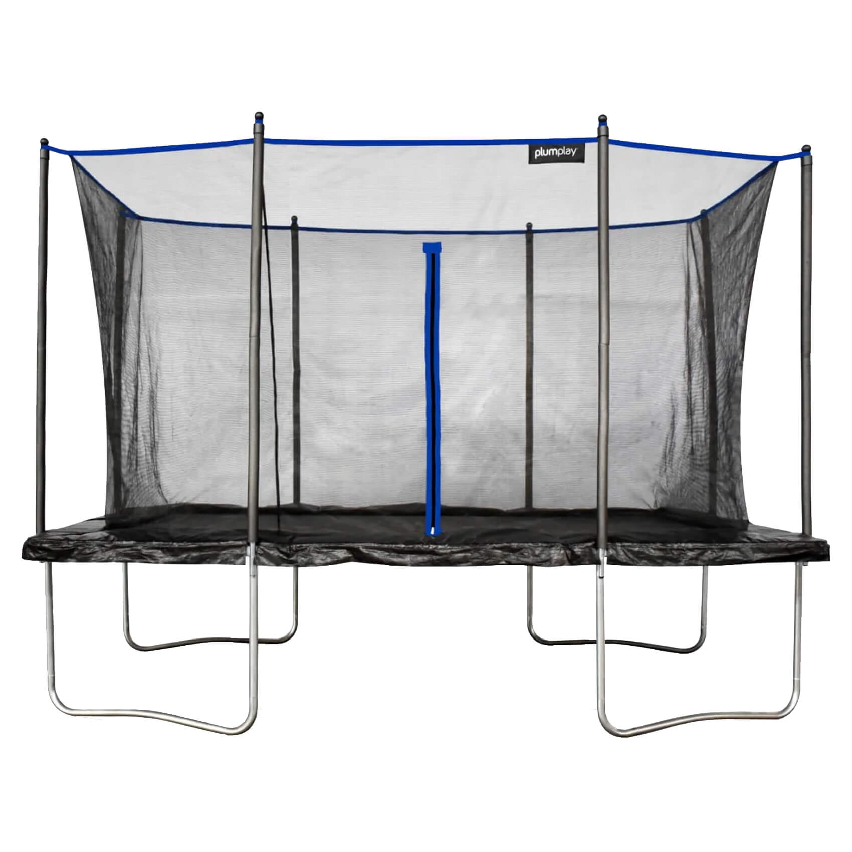 The Rectangle Trampoline offers a zip-entry netted enclosure which includes Plum's Springsafe Technology, keeping jumpers of all ages safe while playing by protecting them from metal spring and frame parts.