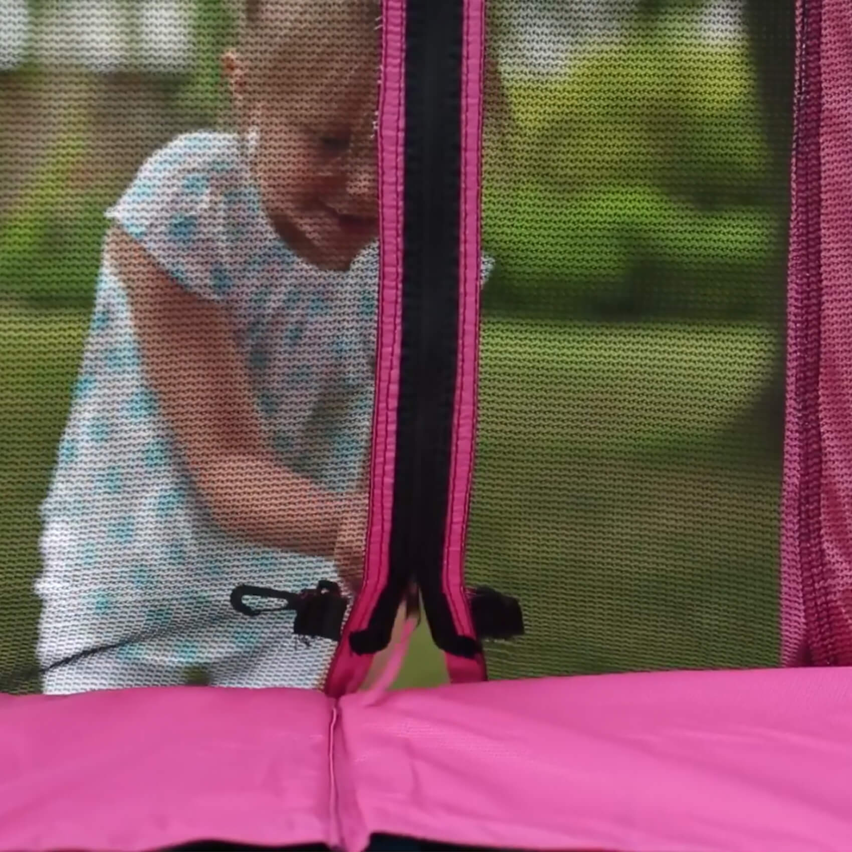 The 6ft Junior Springsafe feature springs under a protective mat, which provide a more predictable bounce pattern for enhanced safety. The mat, enclosure and weather-protected PVC spring safety pads also feature a matching colour design, available in a choice of either blue or pink.