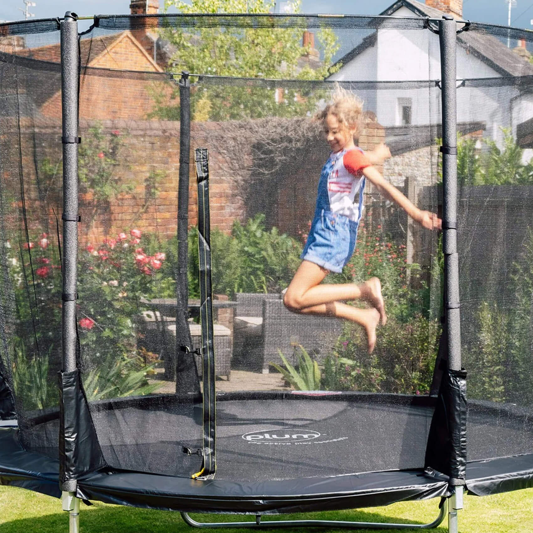 Enjoy hours of outdoor fun for you and your little ones with the Plum Space Zone II Evolution Trampoline and Enclosure! Its unique telescopic pack-down enclosure design allows the trampoline to be quickly retracted when not in use. When extended, the netted enclosure keeps jumpers safe including in gardens, patios and home entertainment spaces.