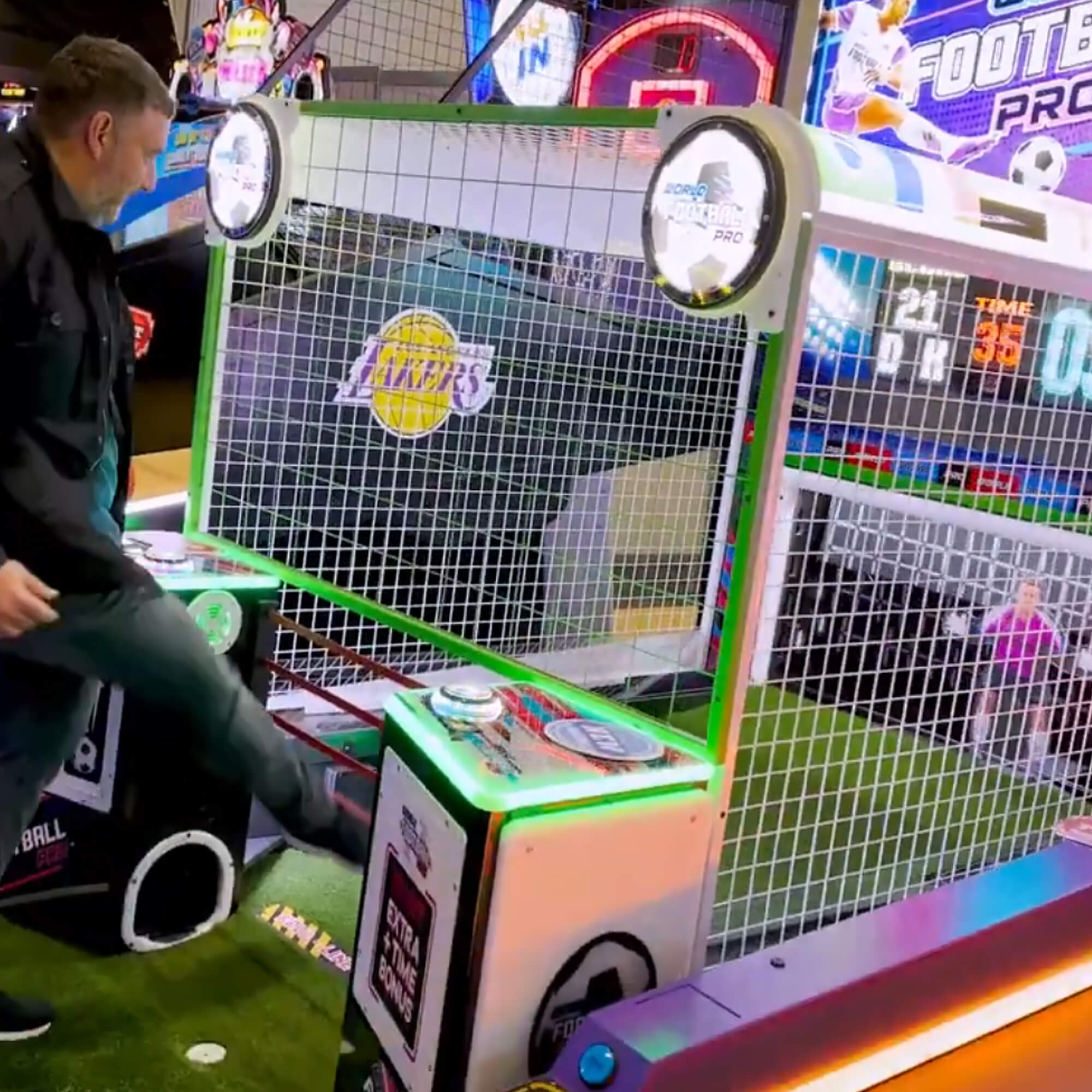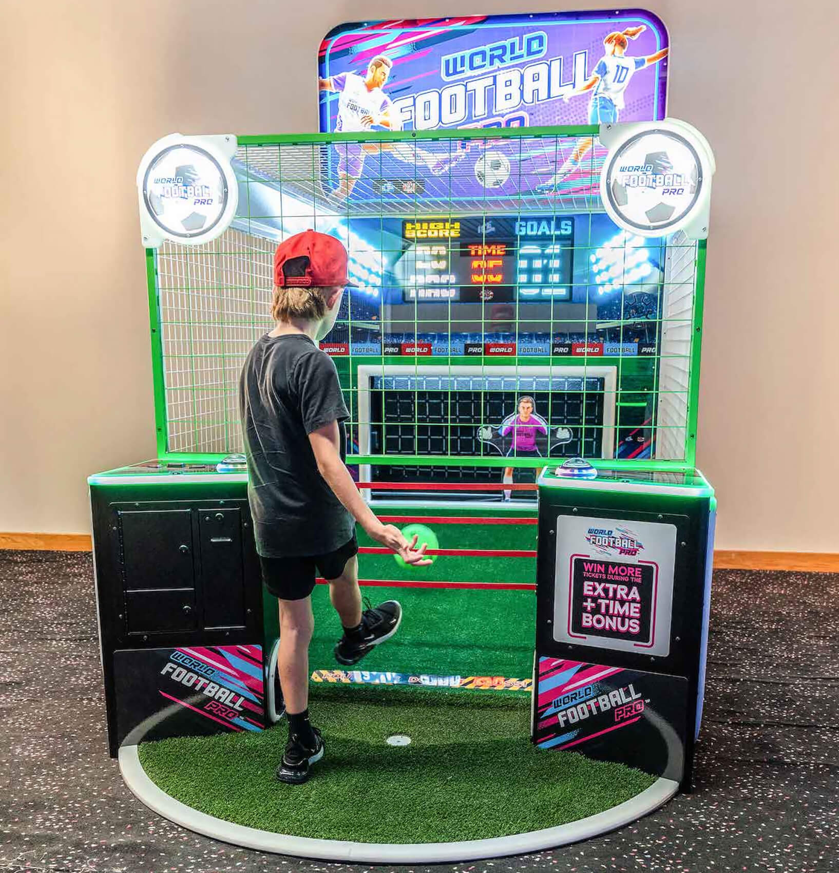 It's fitted with low-profile side-cages which enables spectators to watch your moves without the risk of injury. The World Football Pro includes a classic jumbotron display that shows your score, current time remaining in the round and leaderboard high-scores for you to beat!
