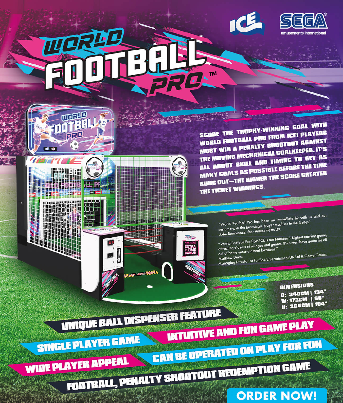 The World Football Pro is built for single-player use and is ideally targeted for commercial use in arcades, bars, offices and hospitality spaces. It's also suitable for home entertainment areas with enough room to allow for your powerful kicks!